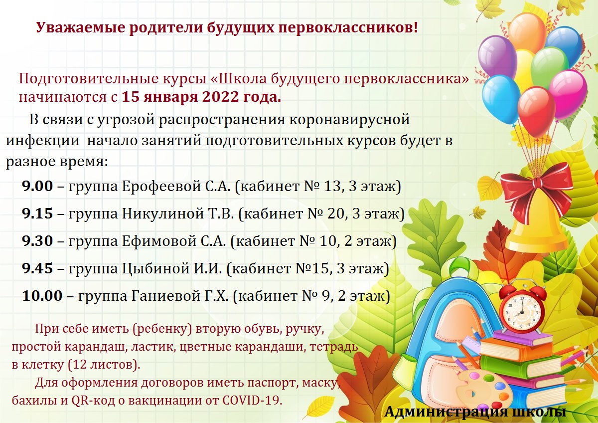 Подготовительные курсы «Школа будущего первоклассника» начинаются с 15 января 2022 года.