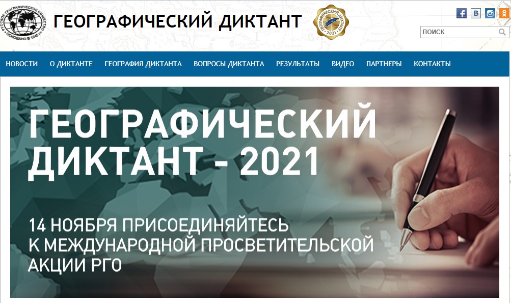 Географический диктант можно будет написать и в интернете. Онлайн-акция стартует на сайте dictant.rgo.ru в тот же день, что и на очных площадках, но будет идти в течение нескольких суток, чтобы все желающие успели проверить свои знания. В этом году географическое онлайн-тестирование продлится с 14:00 14 ноября до 14:00 24 ноября по московскому времени.