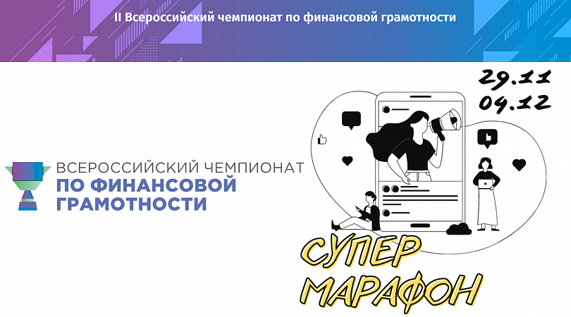 С 29 ноября по 4 декабря 2021 года пройдет СУПЕРМАРАФОН Всероссийского чемпионата по финансовой грамотности, в рамках которого состоится Финальный кубок II сезона, где будут определены Чемпионы России по финансовой грамотности в каждой лиге, а также пройдет серия семинаров и круглых столов, на которых представители Дирекции и Экспертного совета Чемпионата ответят на ваши вопросы.