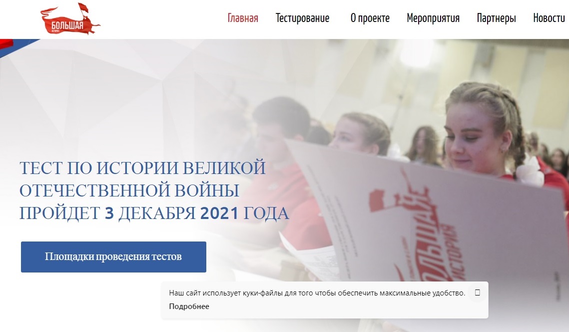 Площадки для проведения теста размещены на сайте: http://test.big-history.ru/area/choose-region