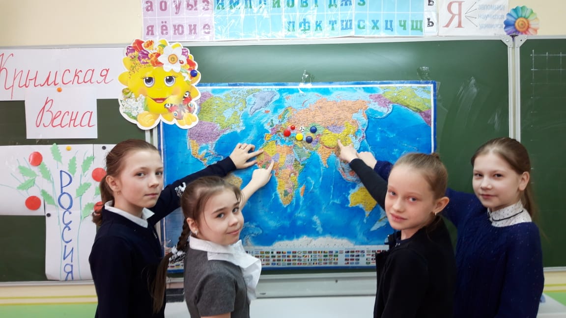 В преддверии каникул в школе прошли мероприятия «Крымской весны». Учащиеся 3-8 классов приняли участие в конкурсе рисунков «Наш Крым», старшеклассники стали участниками Всероссийского урока добровольчества. Во всех классах прошли уроки в честь воссоединения Крыма с Россией «Крымская весна. Мы вместе!».