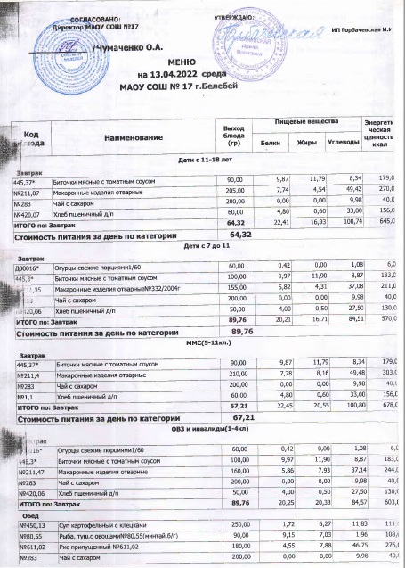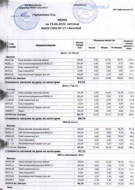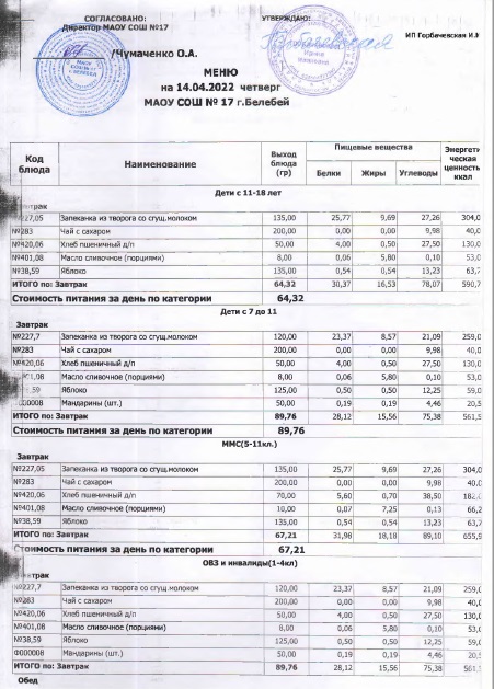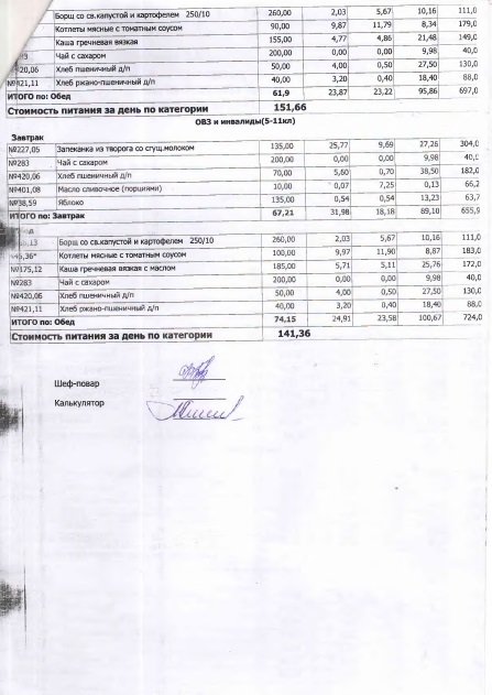 В данном разделе ежедневно размещается фотографии меню и контрольных блюд.