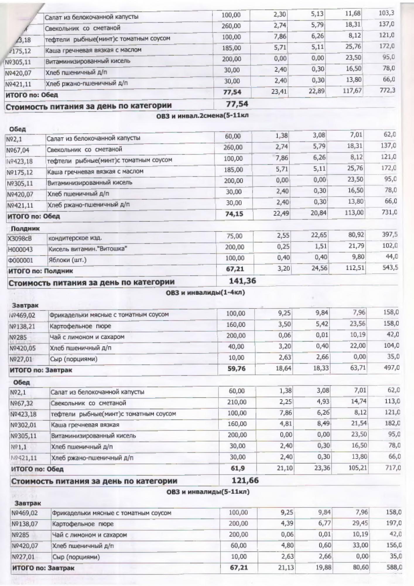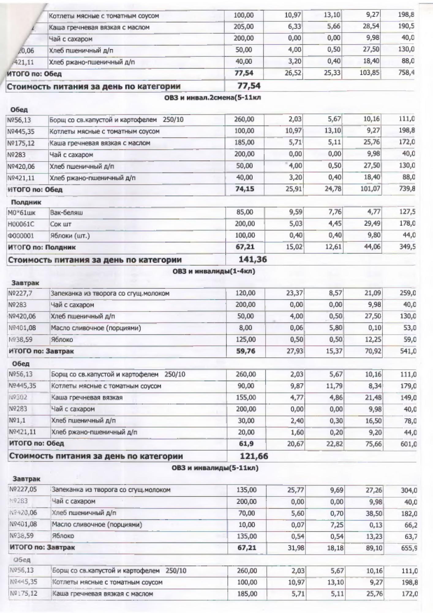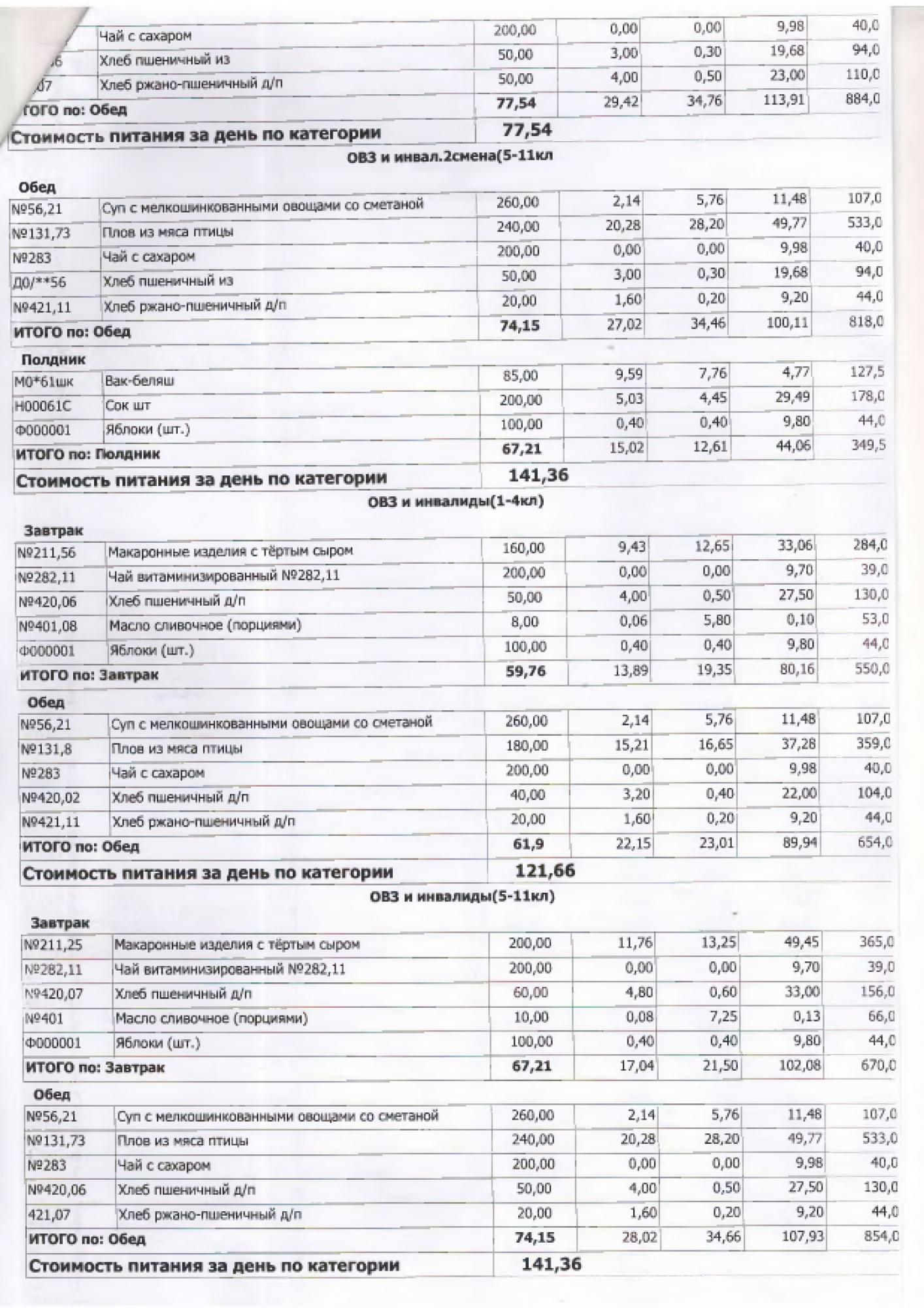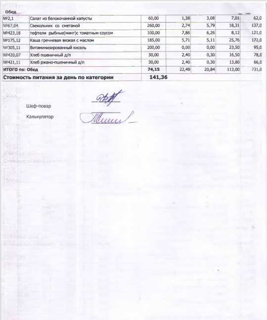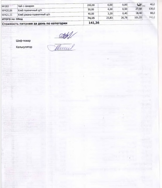 В данном разделе ежедневно размещается фотографии меню и контрольных блюд.