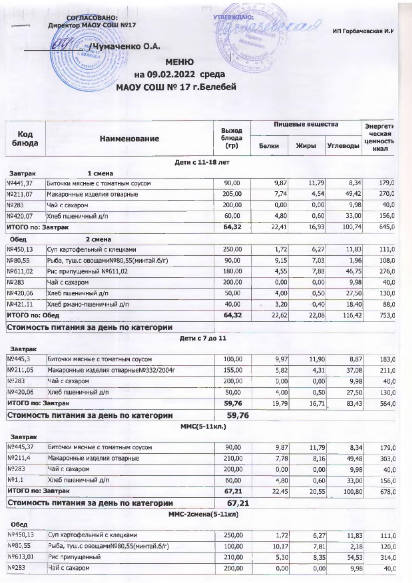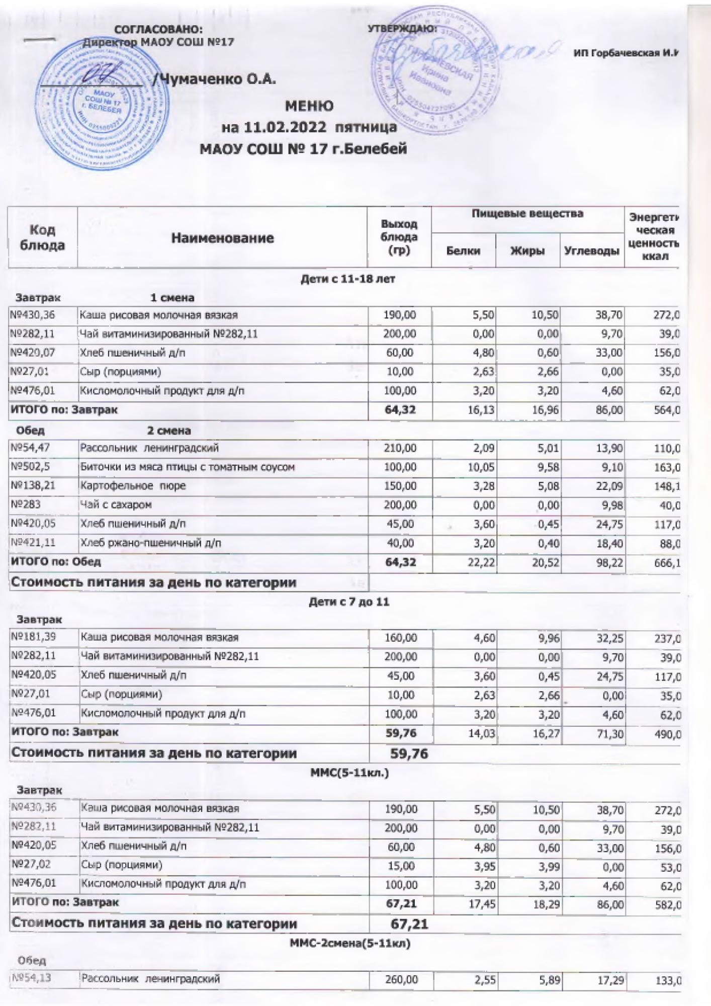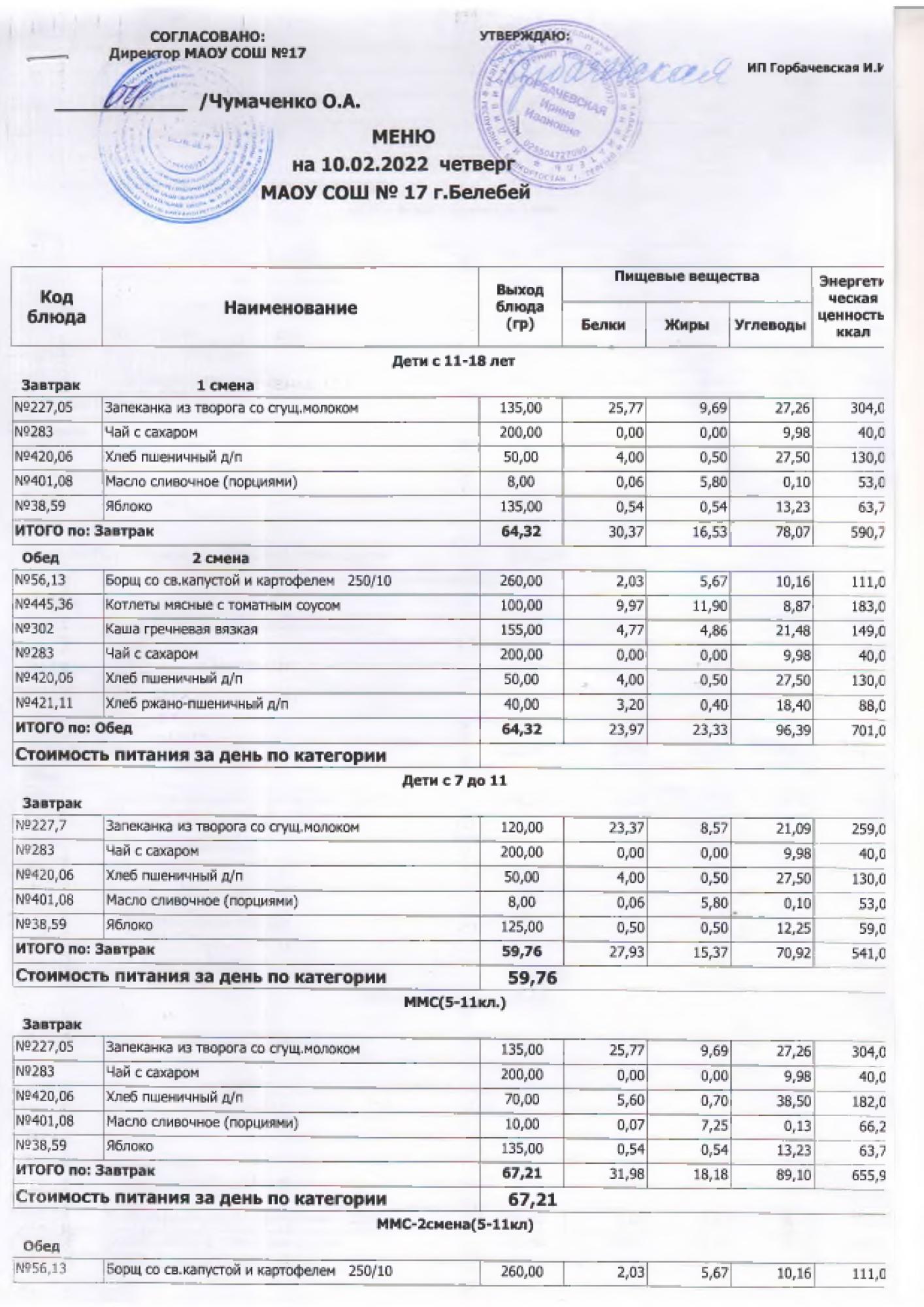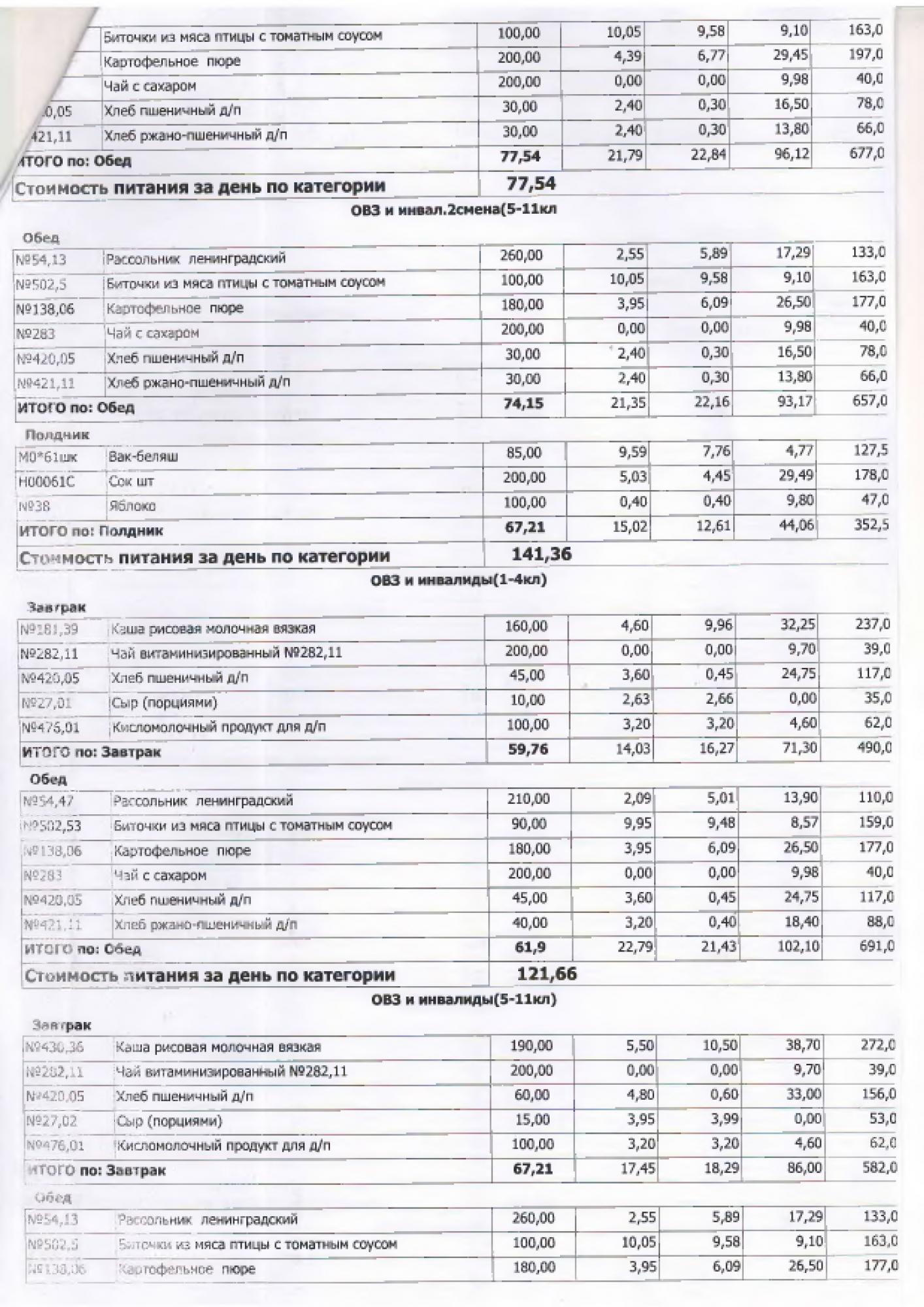 В данном разделе ежедневно размещается фотографии меню и контрольных блюд.