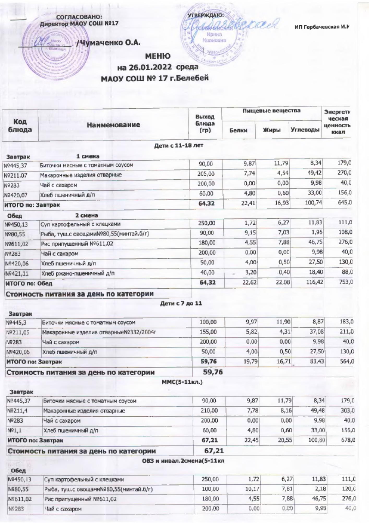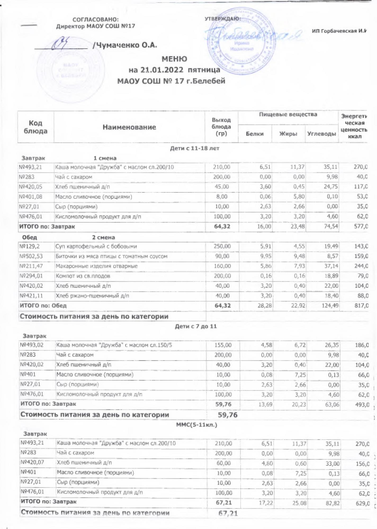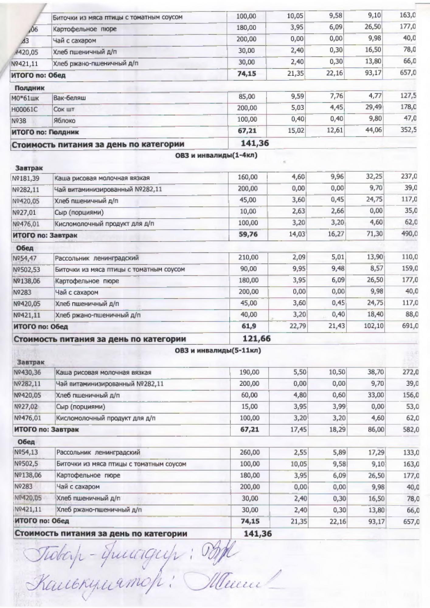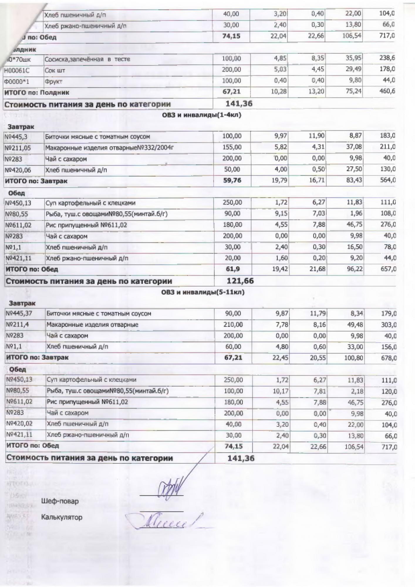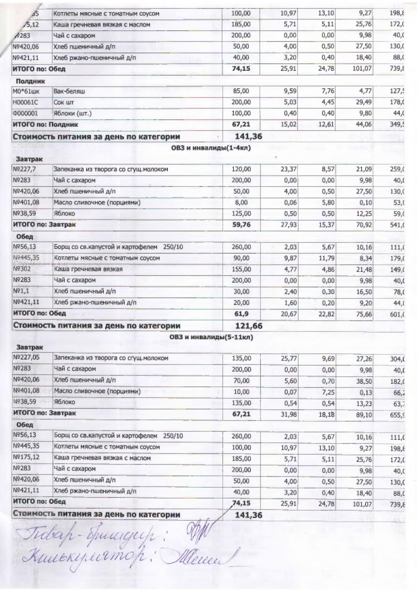 В данном разделе ежедневно размещается фотографии меню и контрольных блюд.