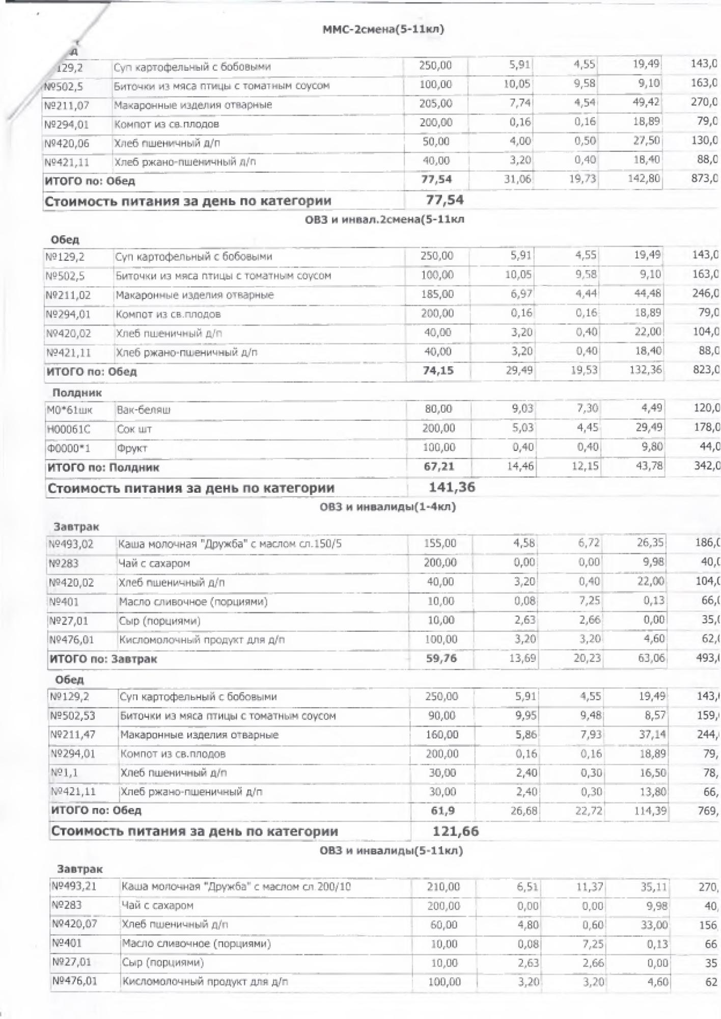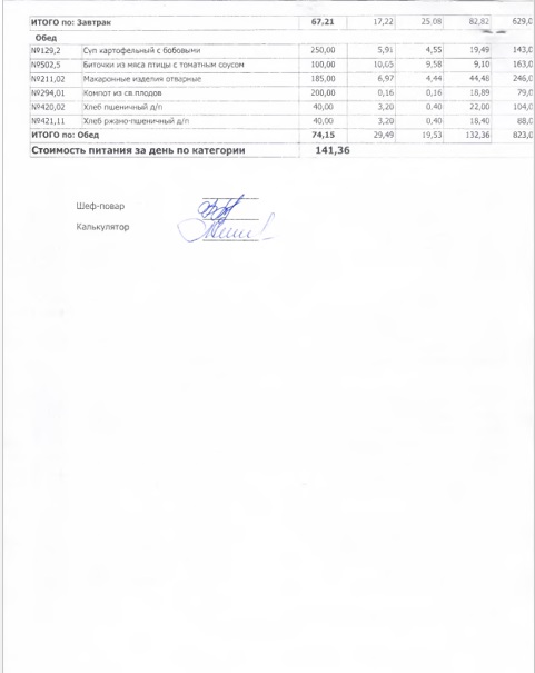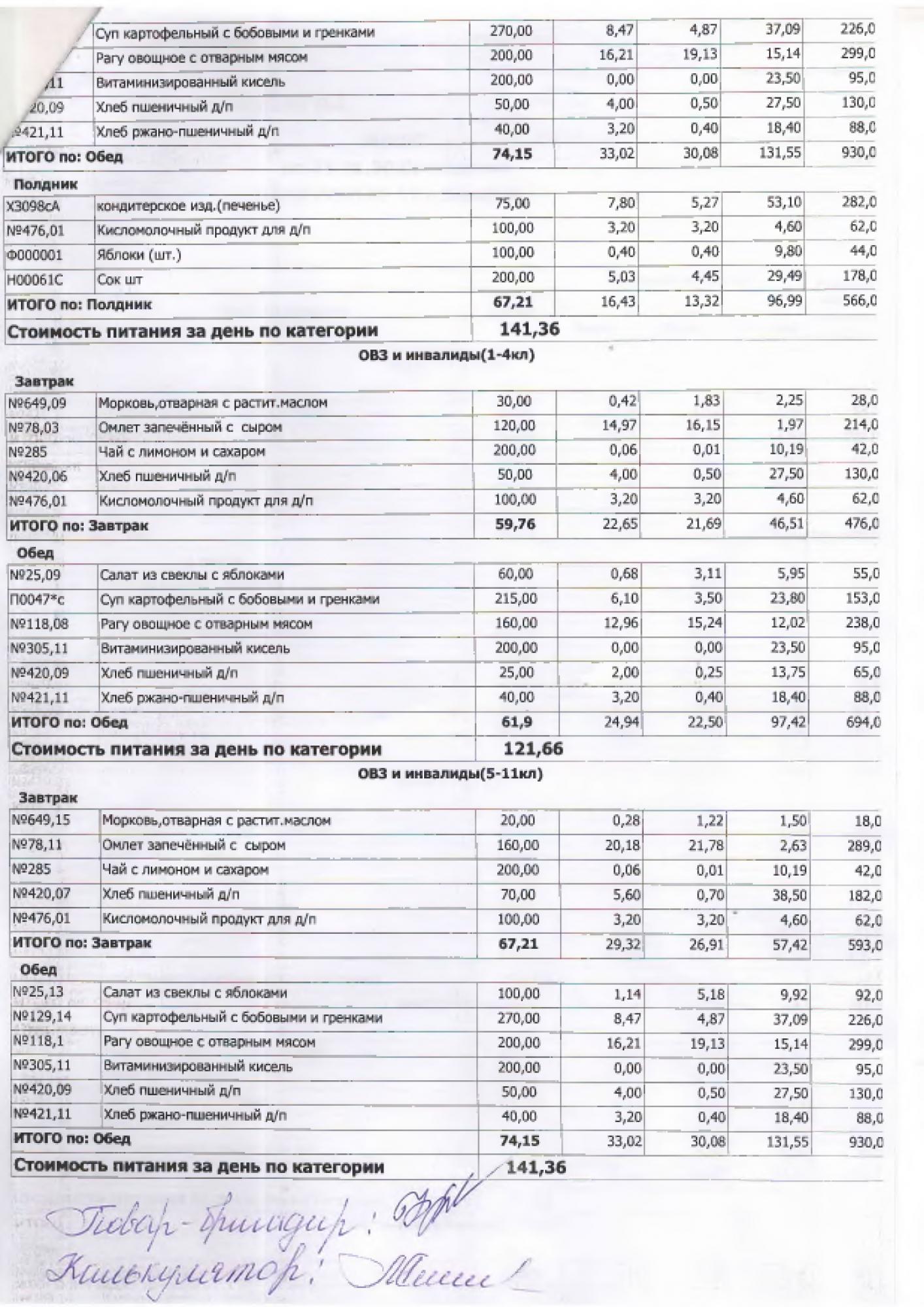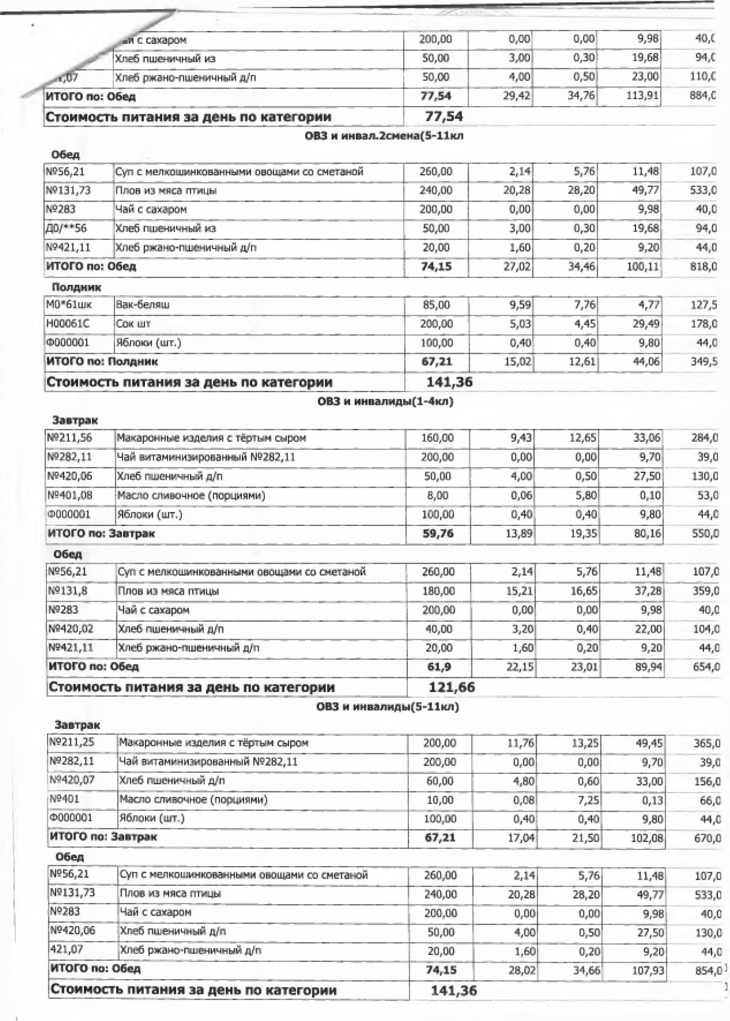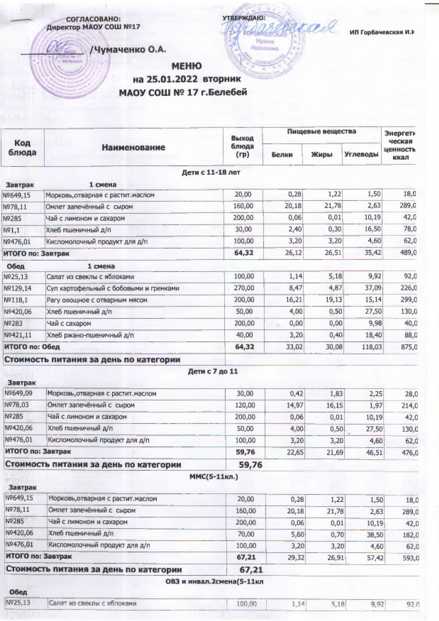 В данном разделе ежедневно размещается фотографии меню и контрольных блюд.