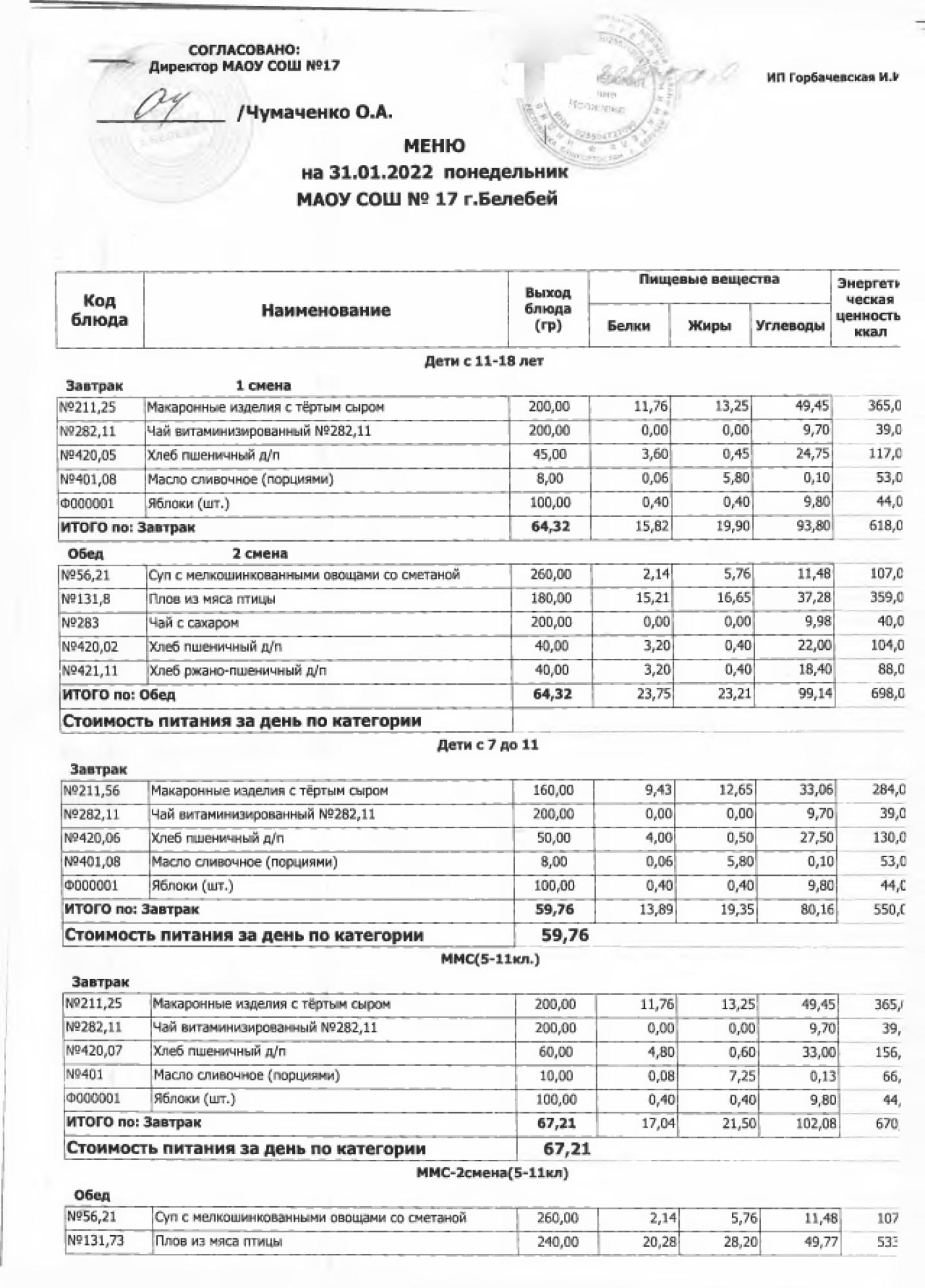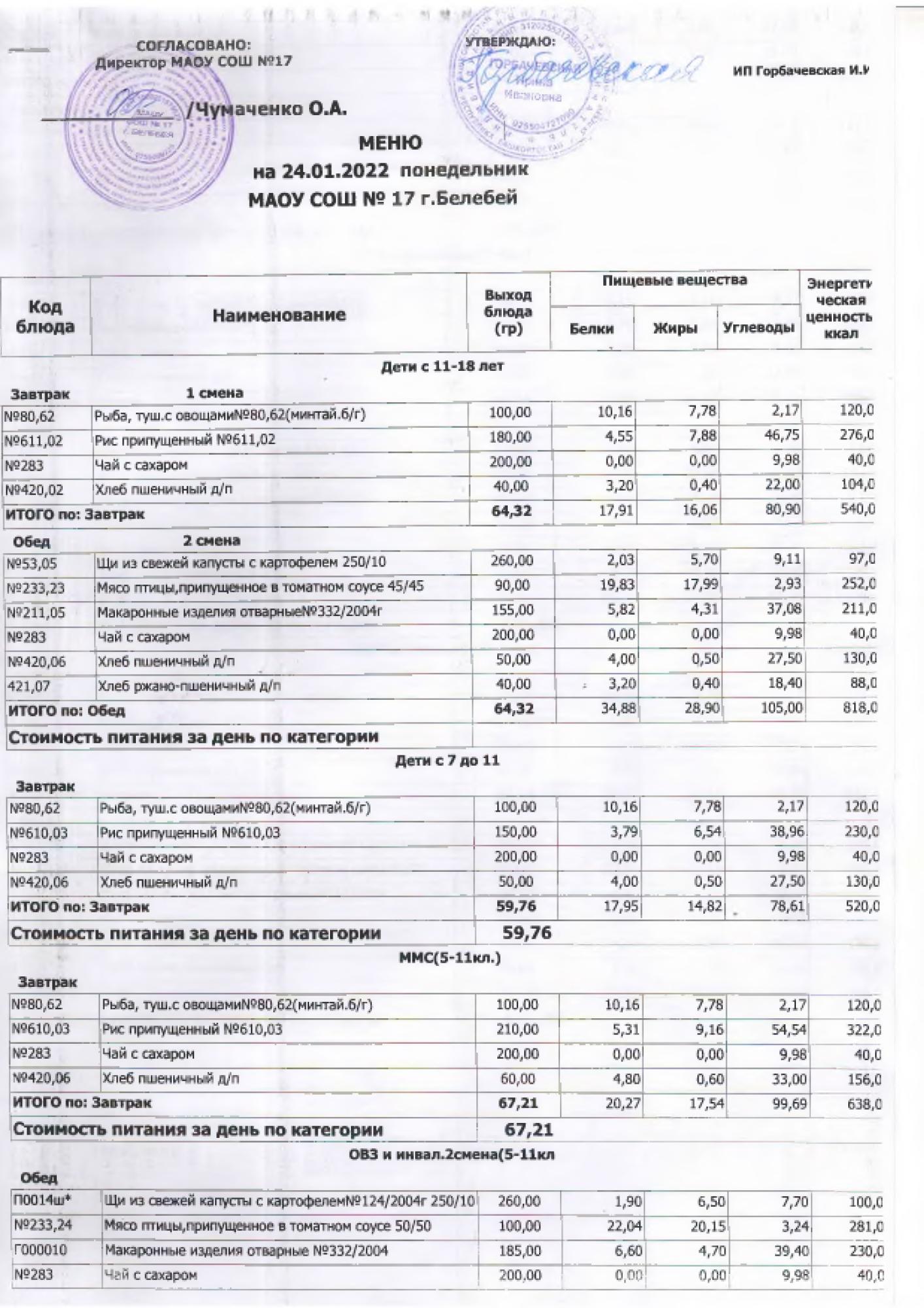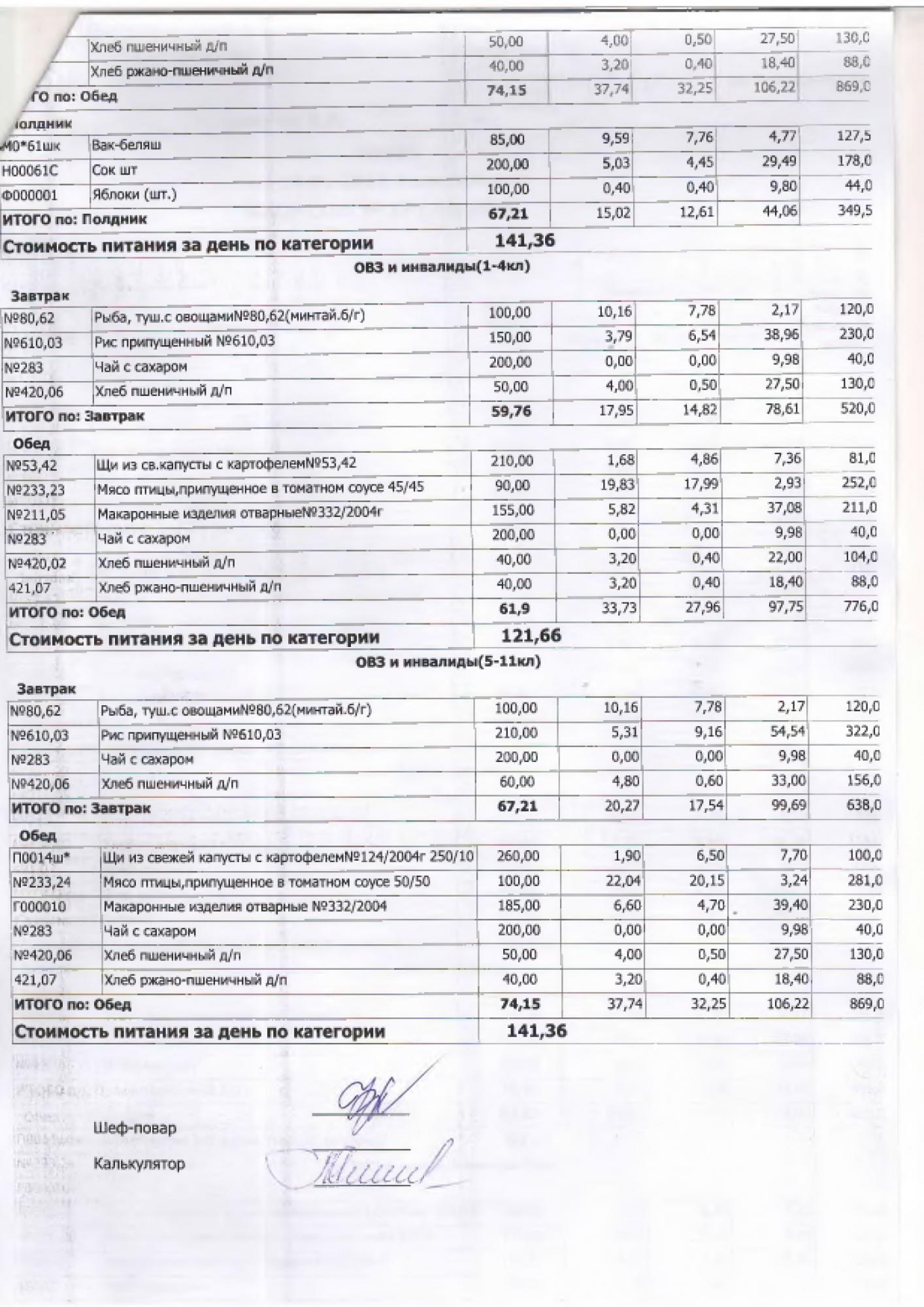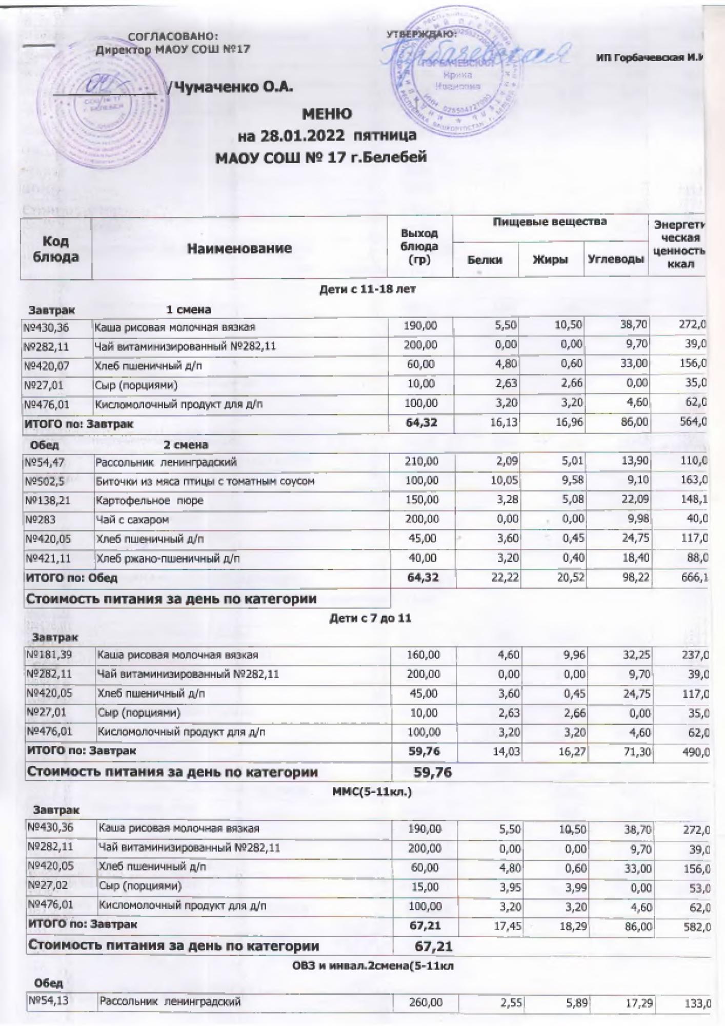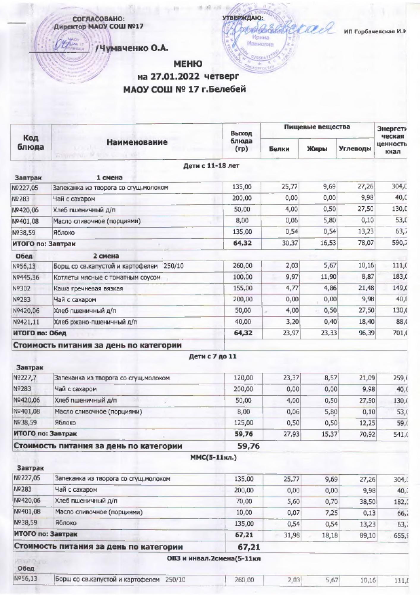 В данном разделе ежедневно размещается фотографии меню и контрольных блюд.
