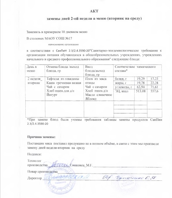 (Акт замены меню)