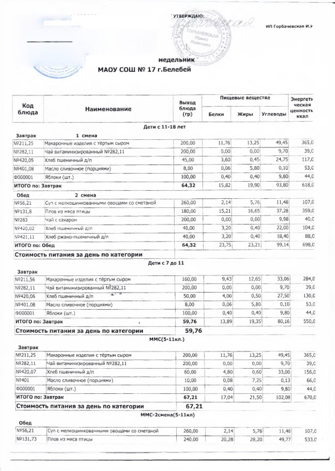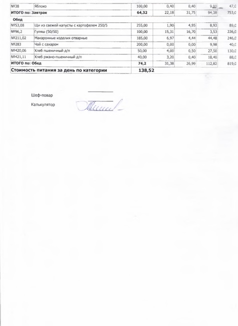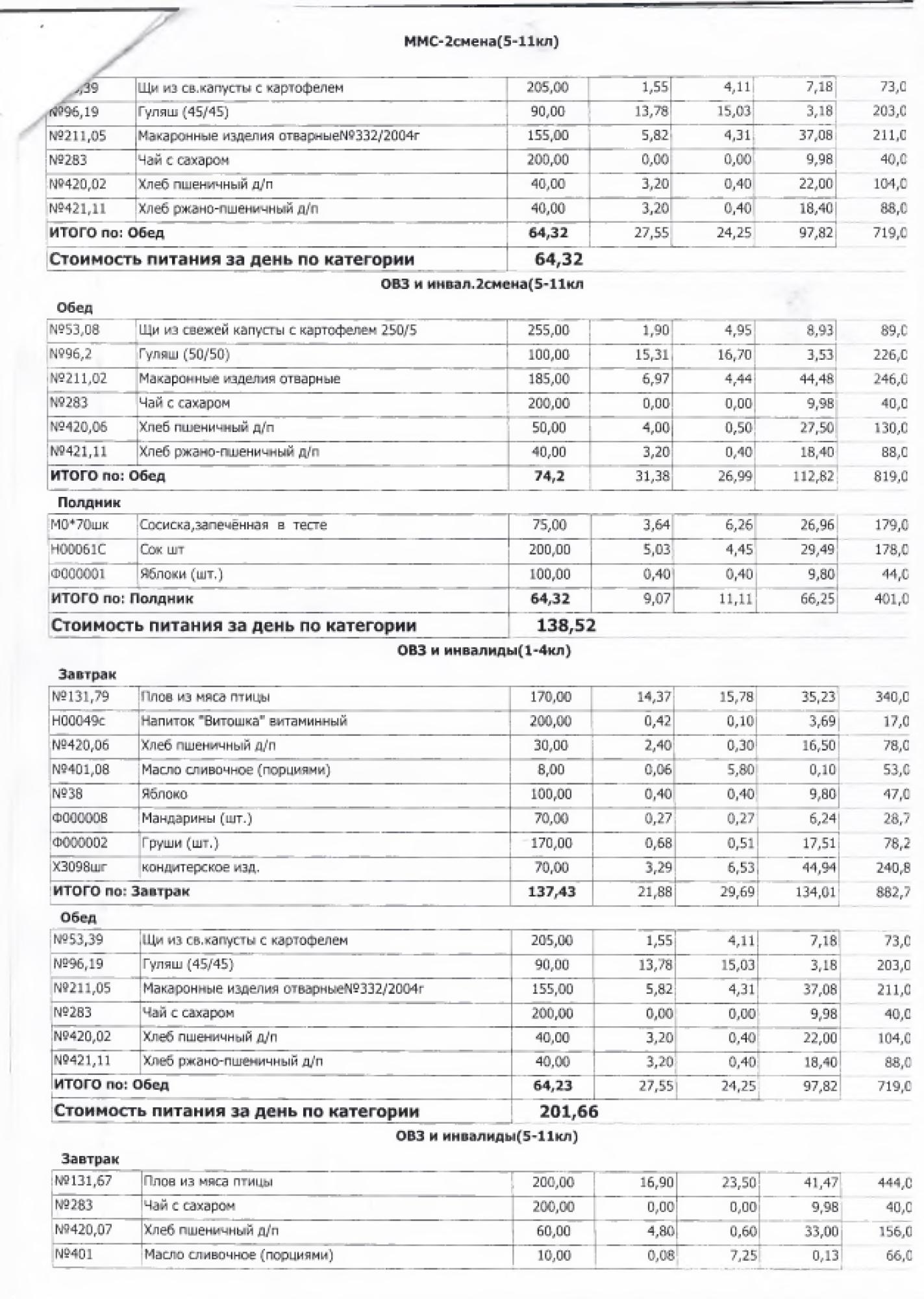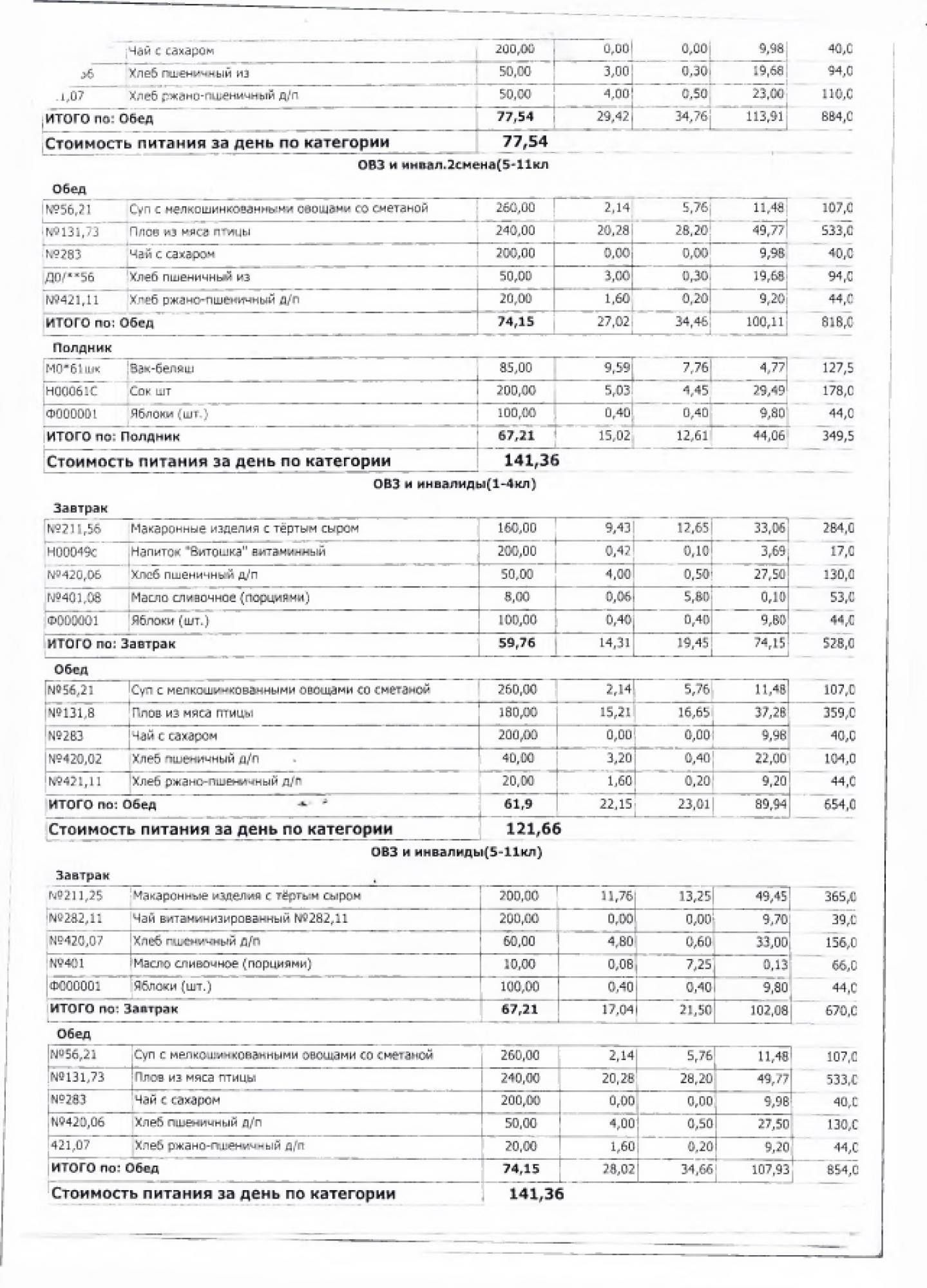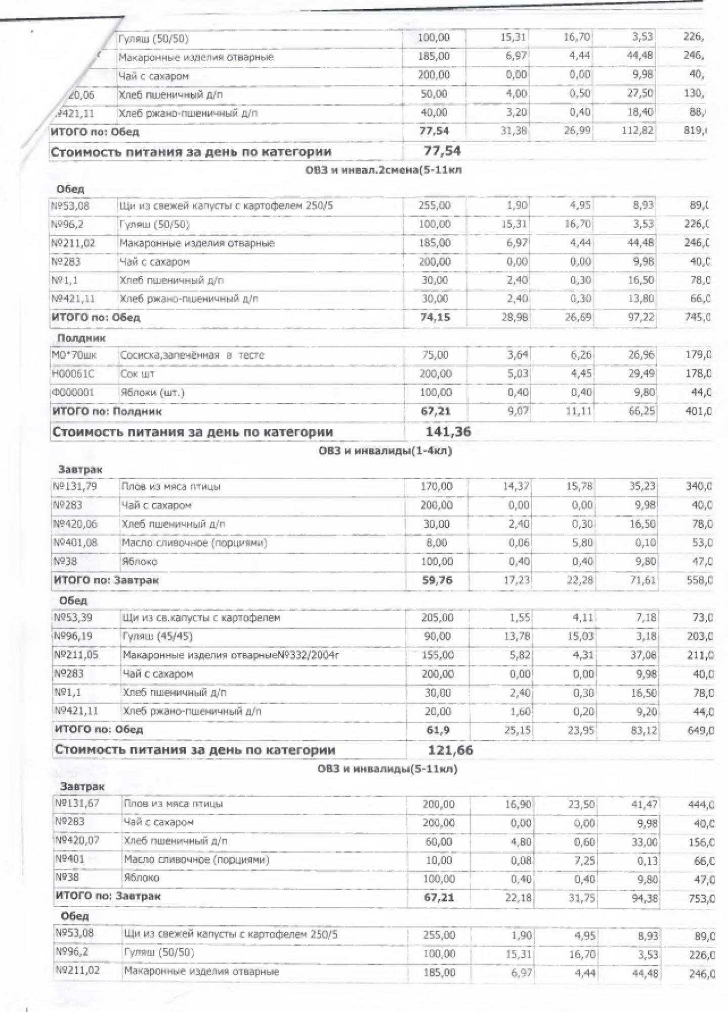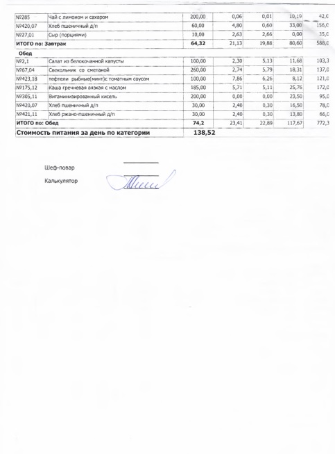В данном разделе ежедневно размещается фотографии меню и контрольных блюд.