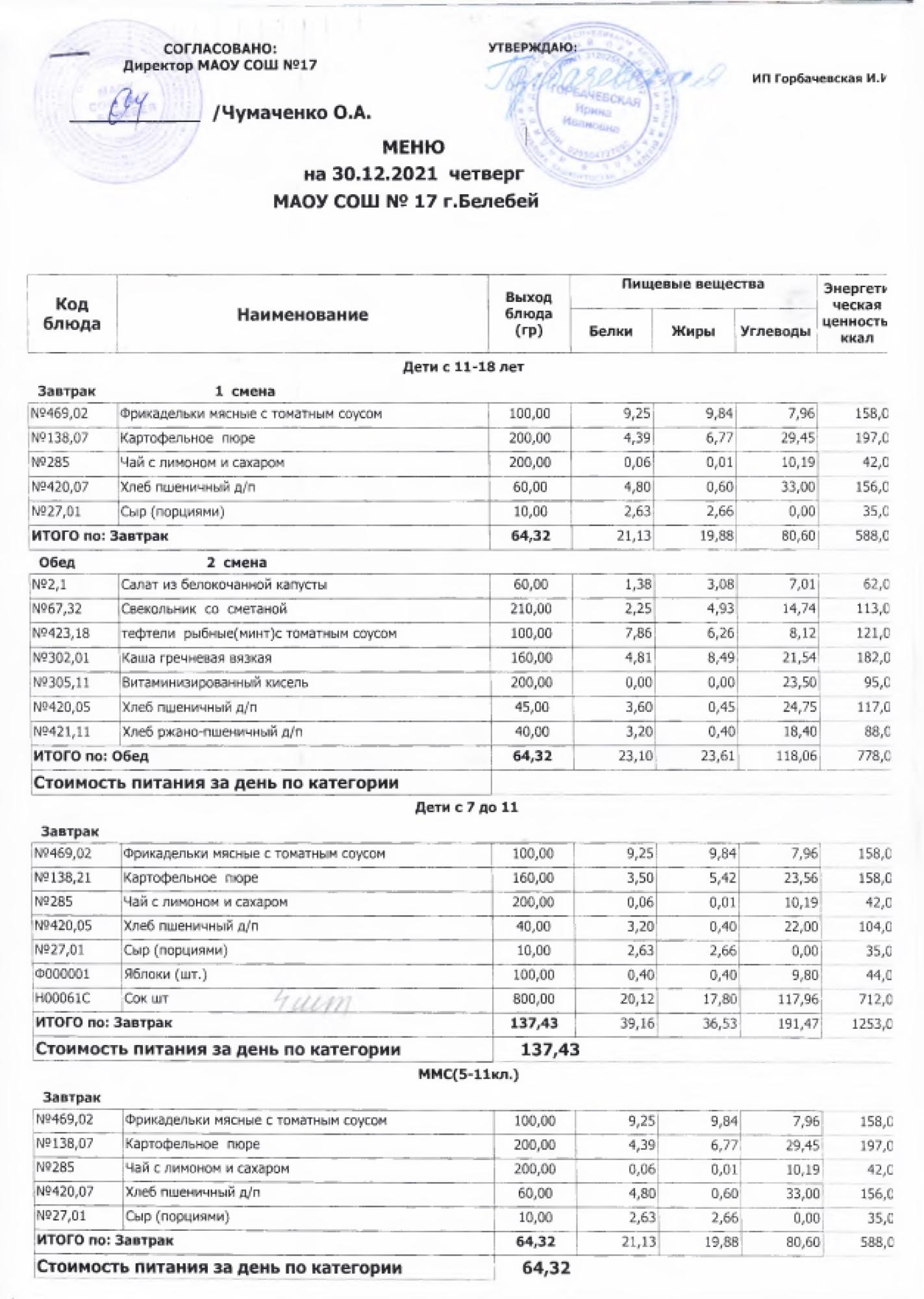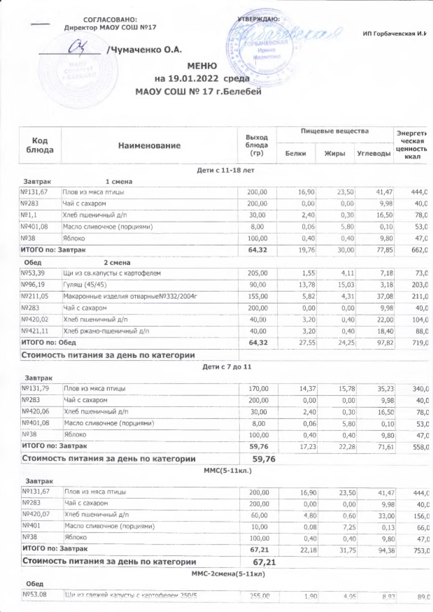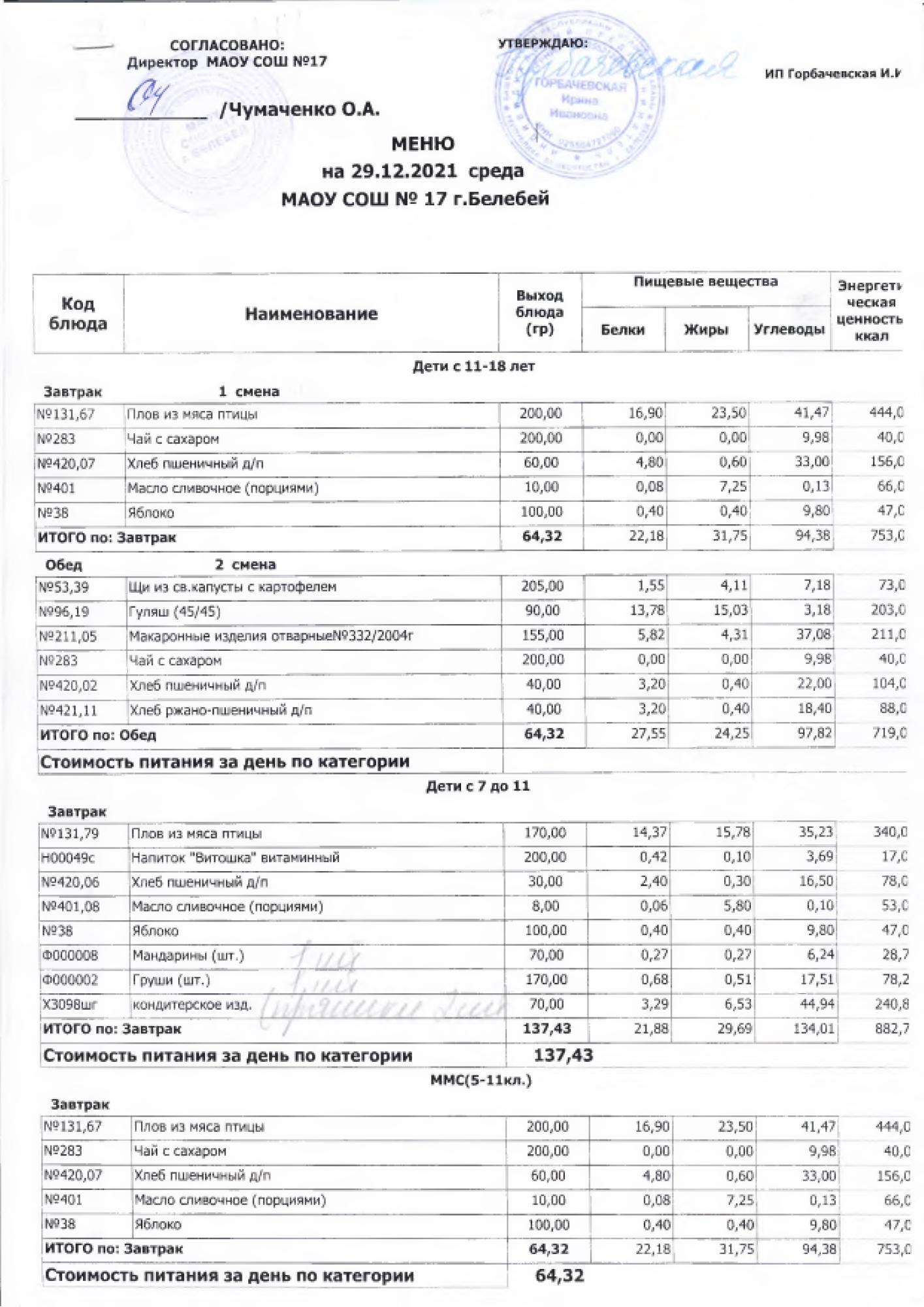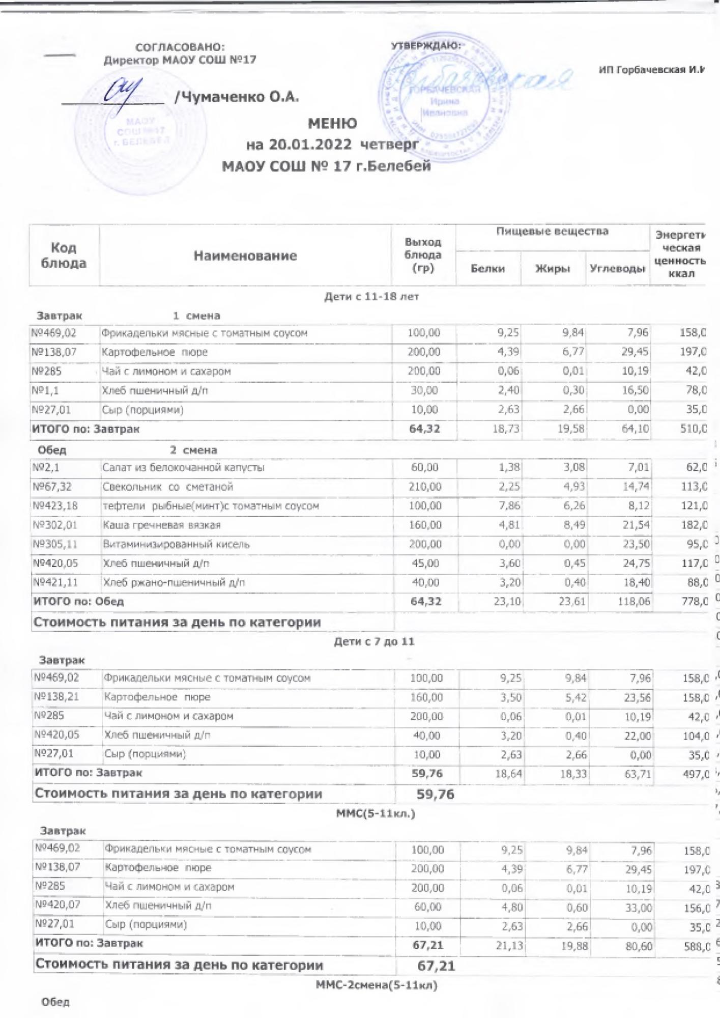 В данном разделе ежедневно размещается фотографии меню и контрольных блюд.
