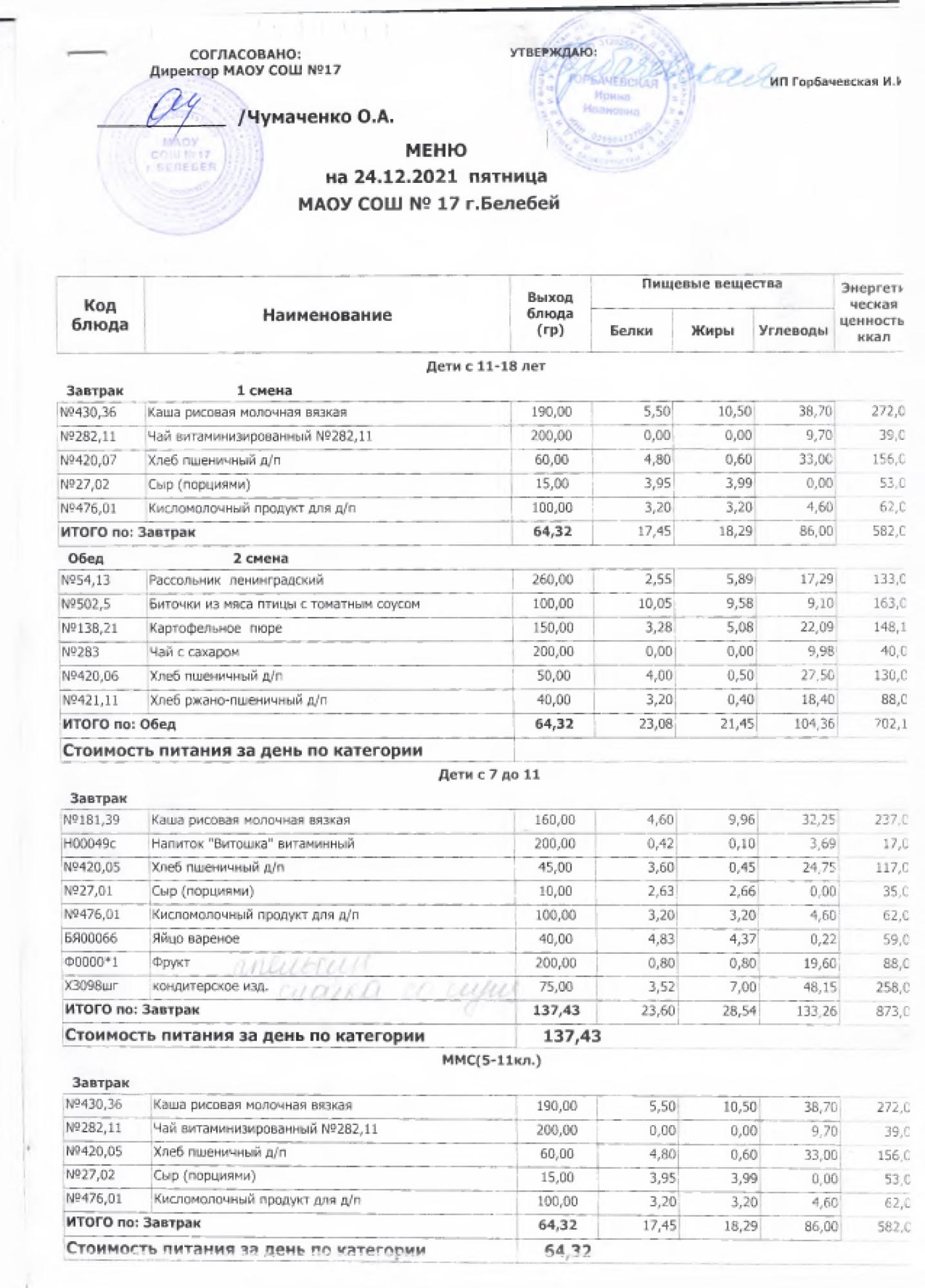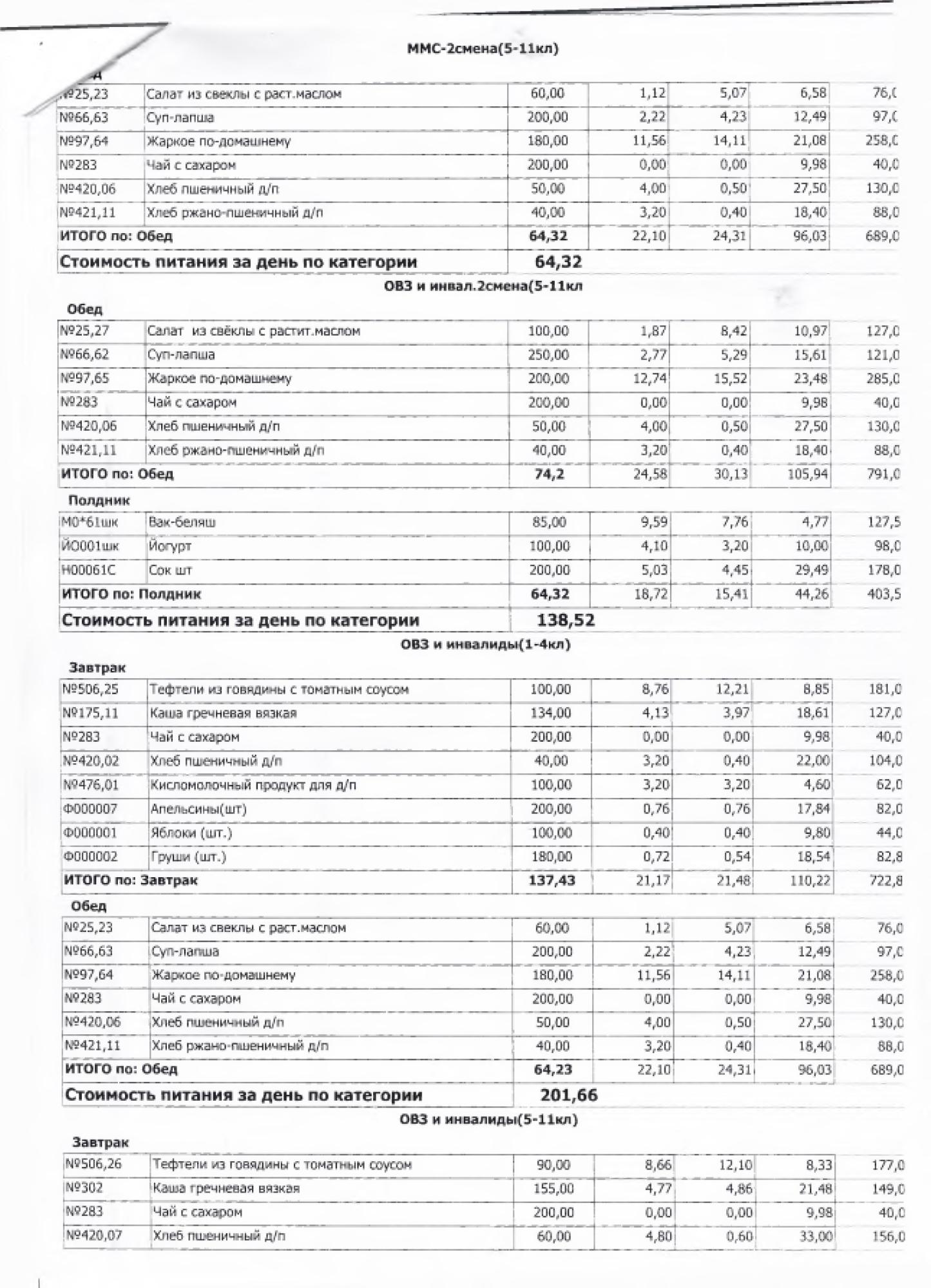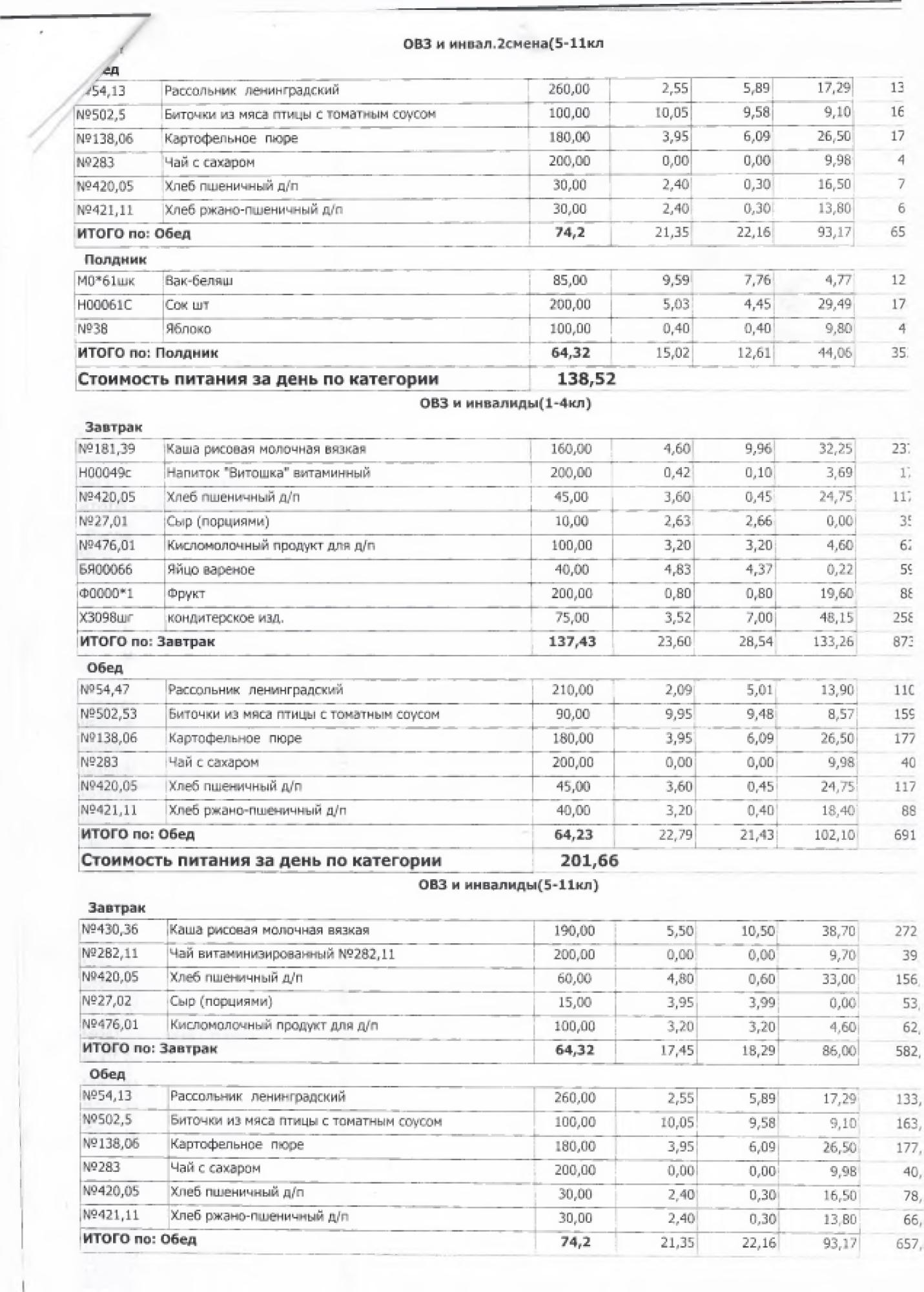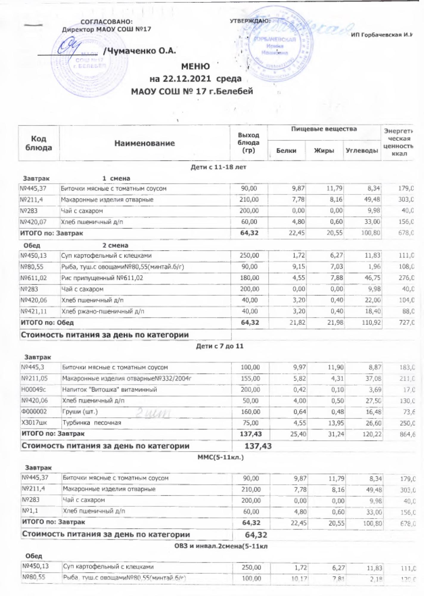 В данном разделе ежедневно размещается фотографии меню и контрольных блюд.