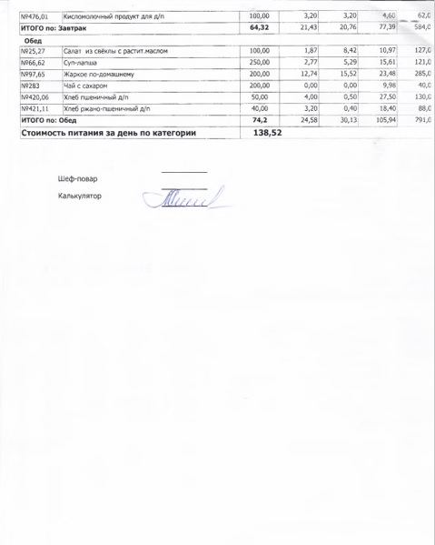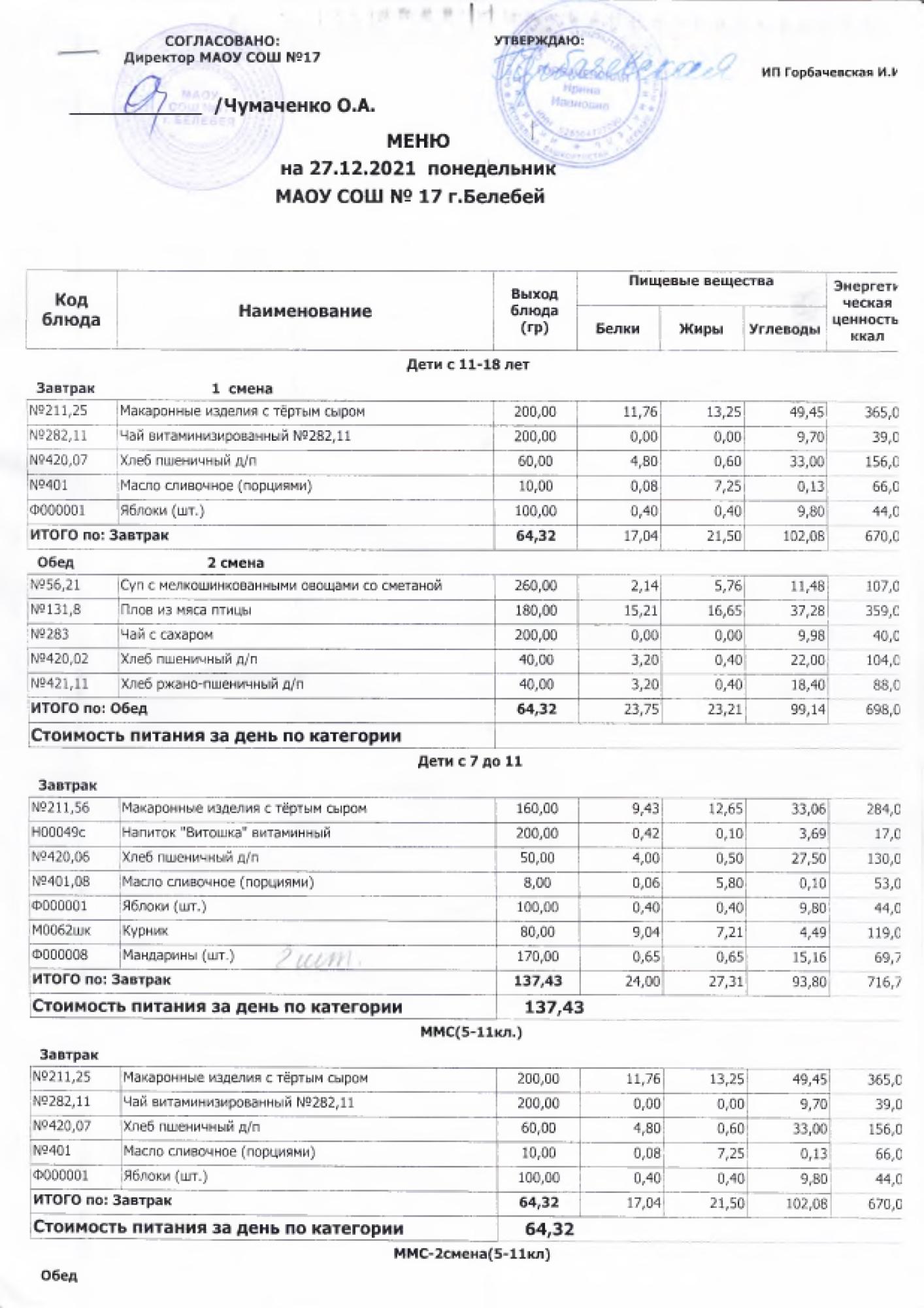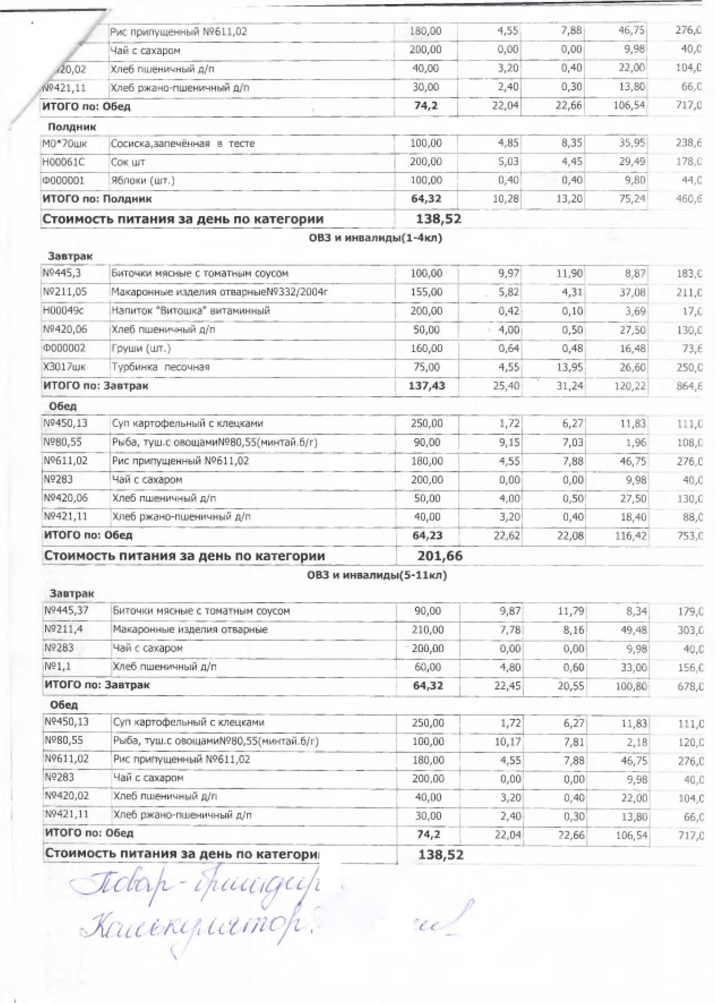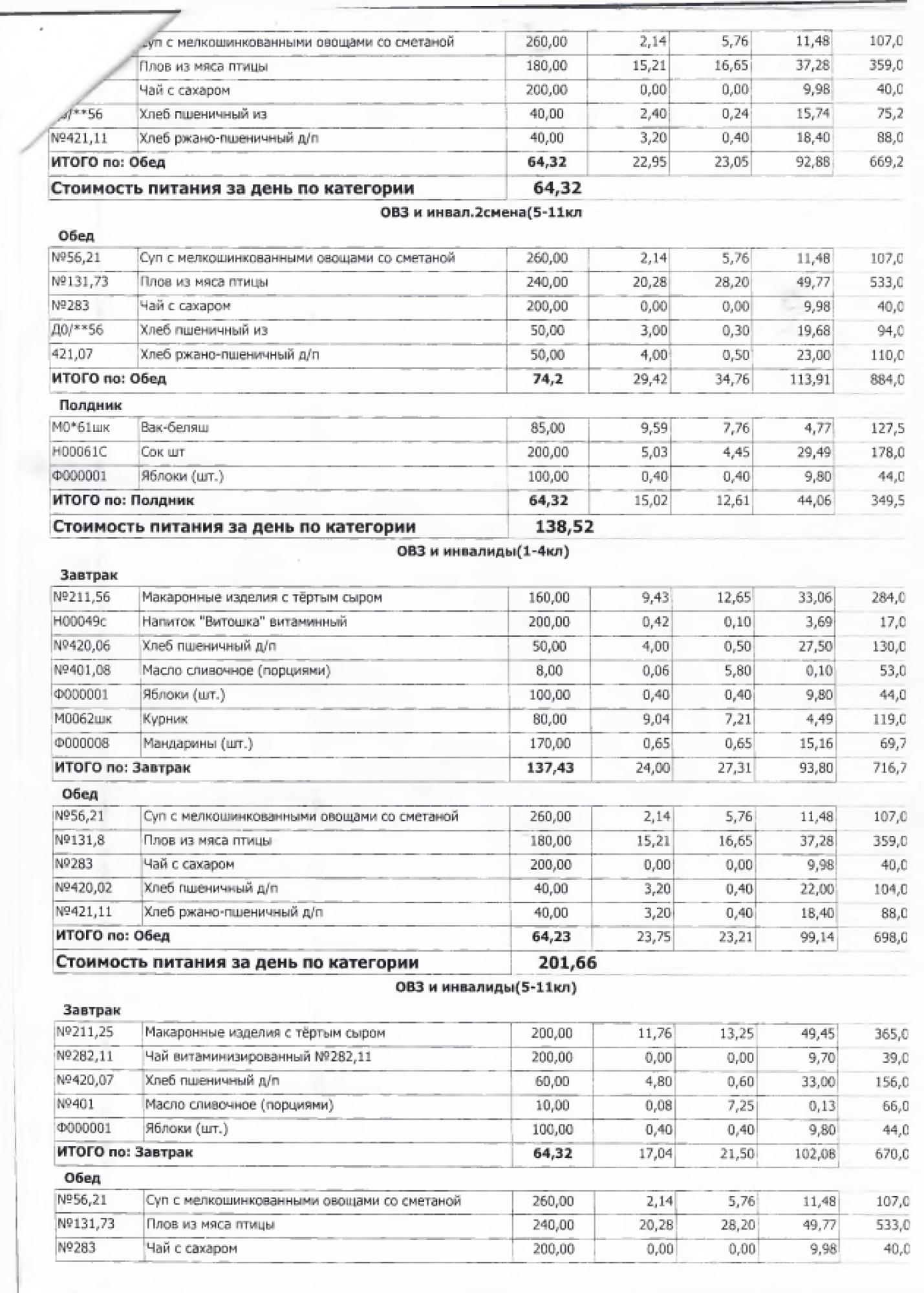 В данном разделе ежедневно размещается фотографии меню и контрольных блюд.