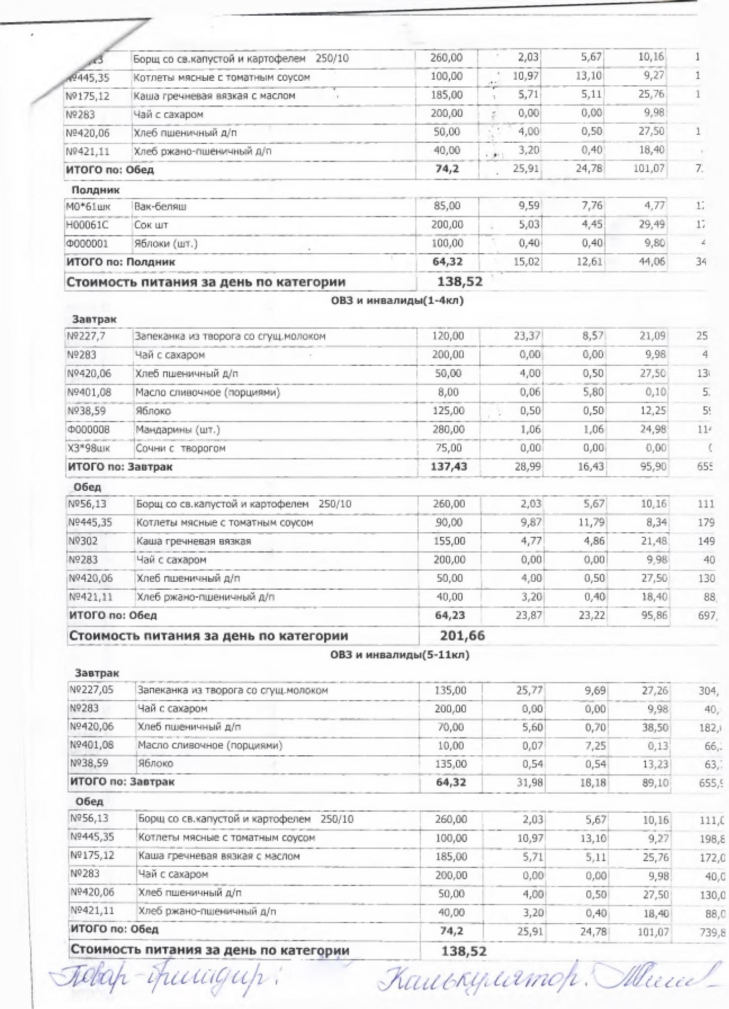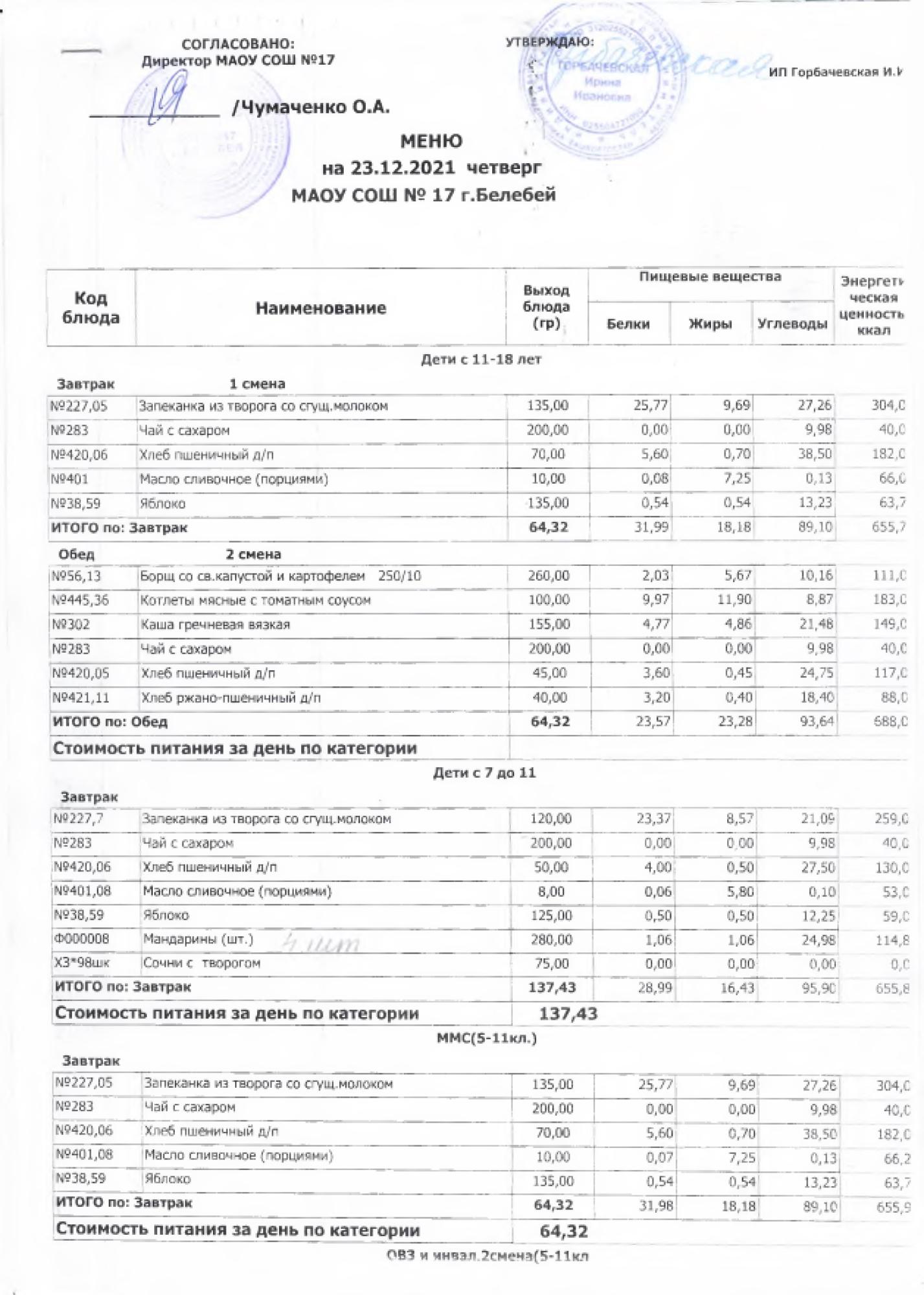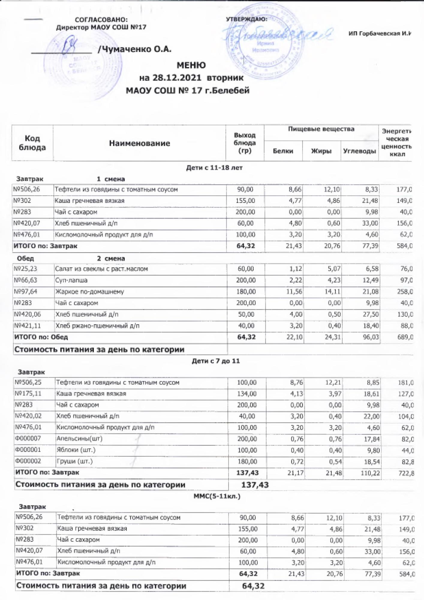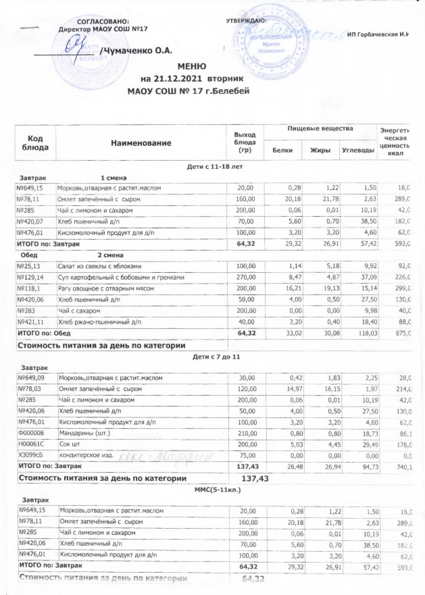 В данном разделе ежедневно размещается фотографии меню и контрольных блюд.