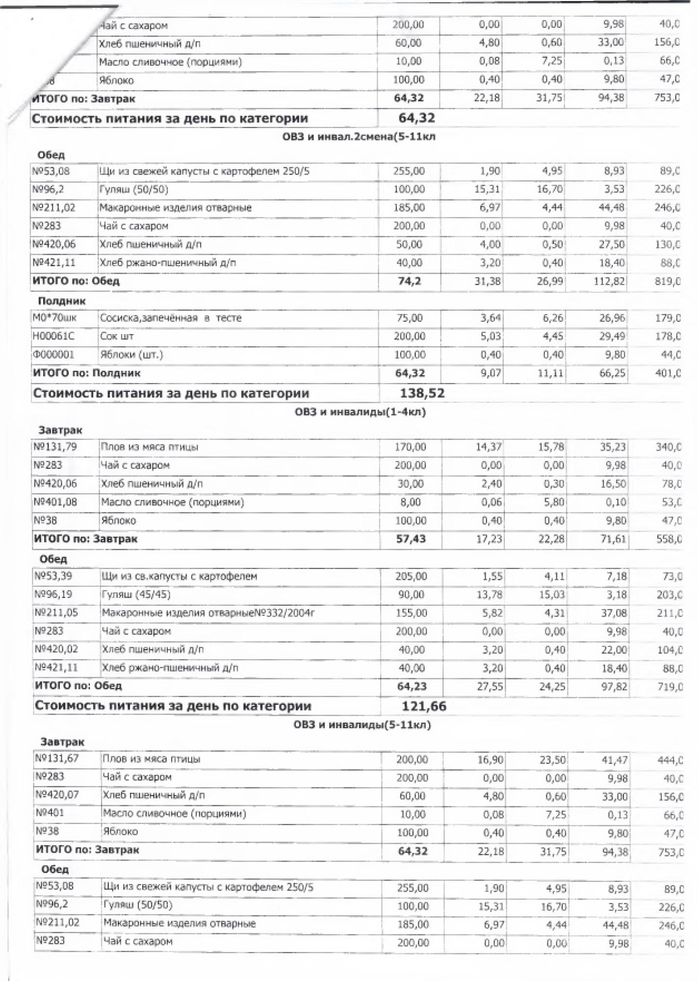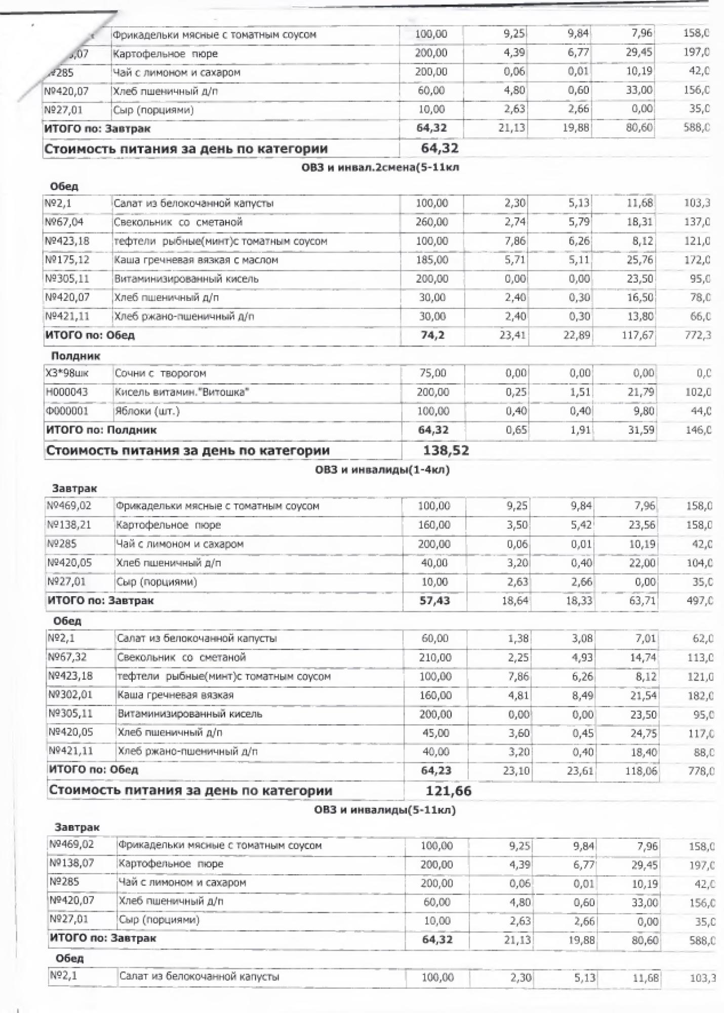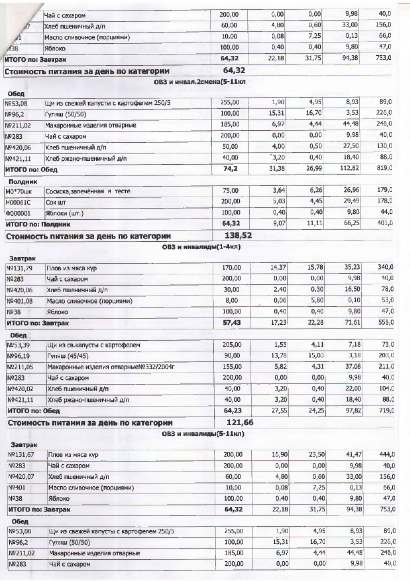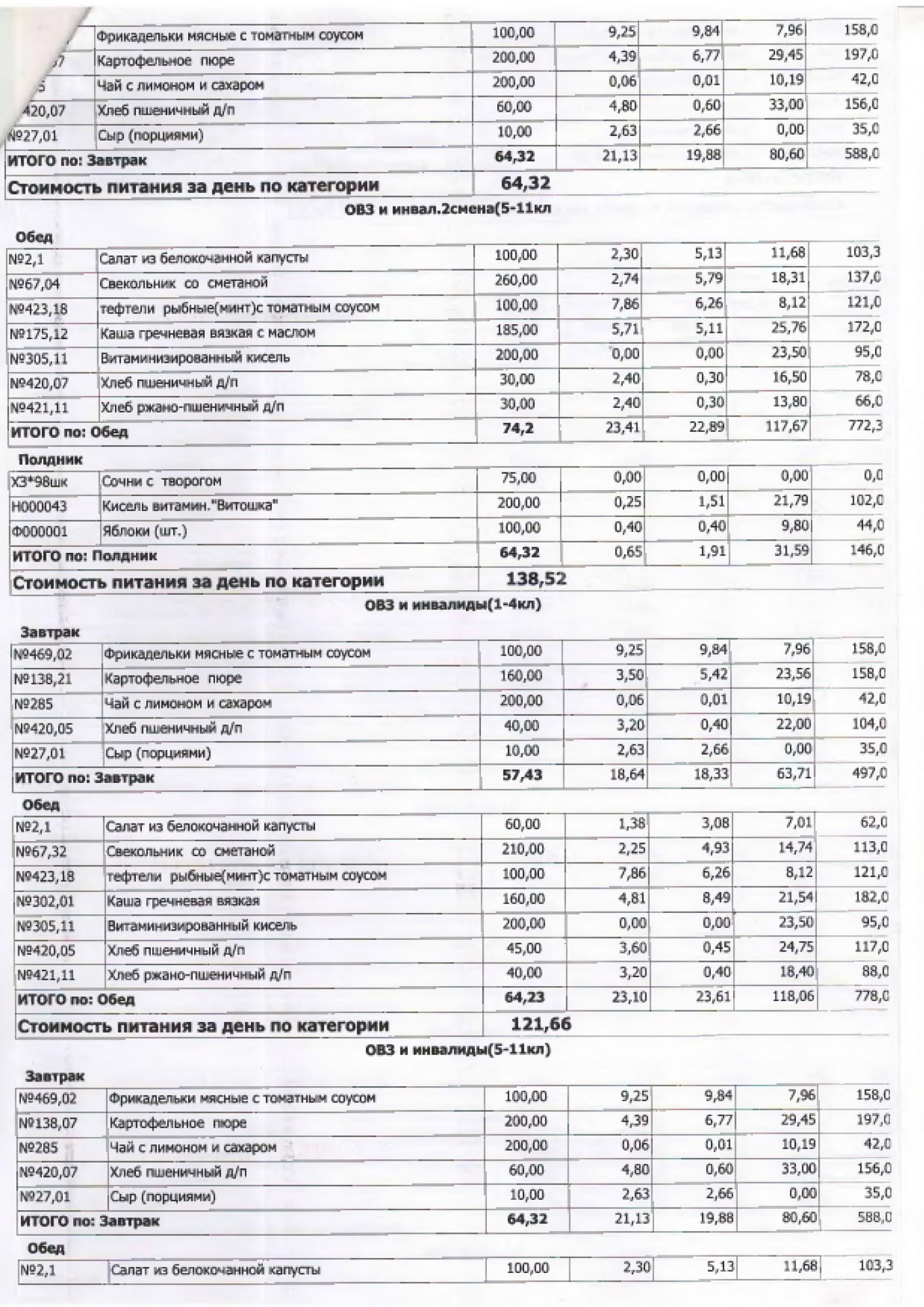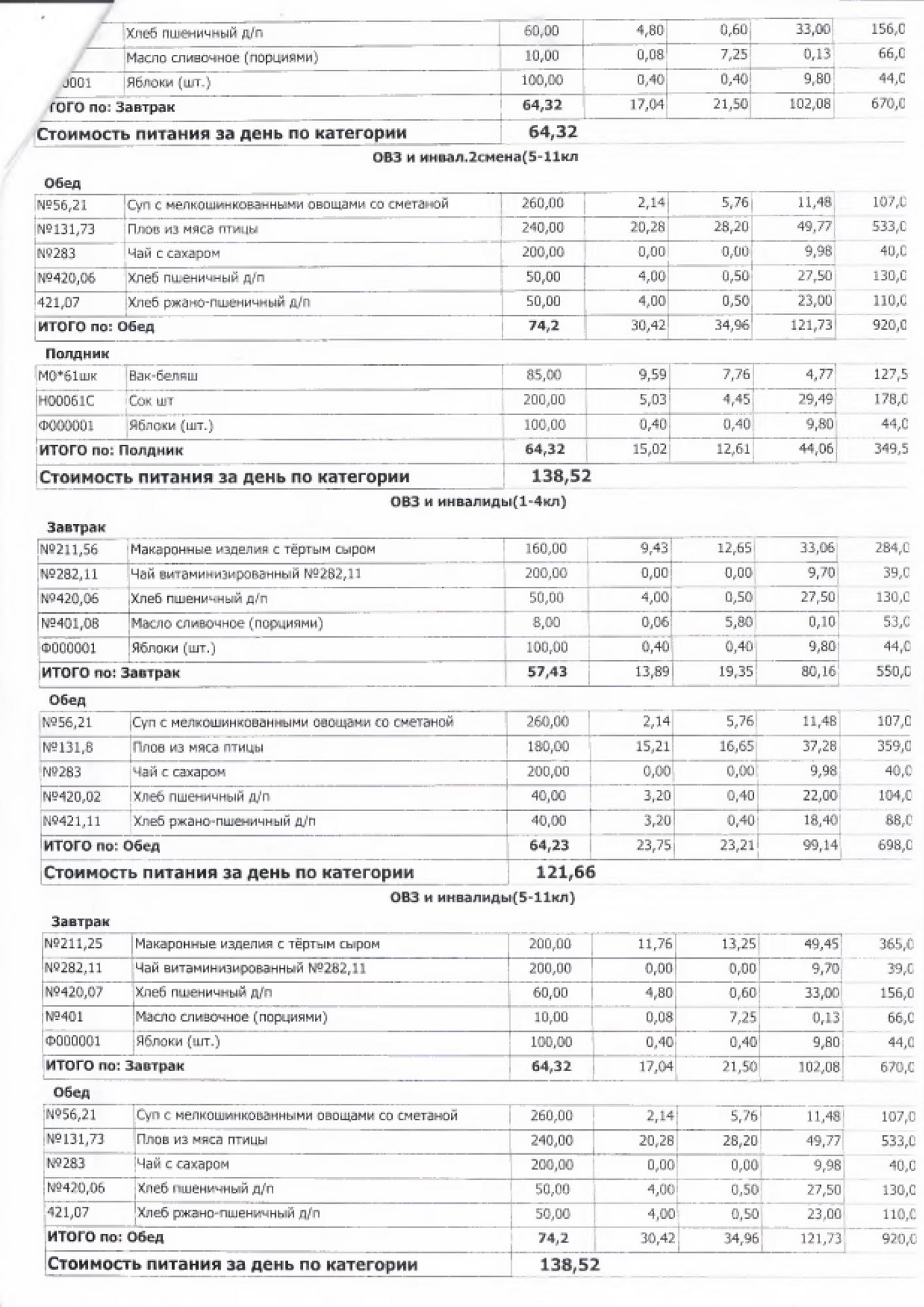 В данном разделе ежедневно размещается фотографии меню и контрольных блюд.