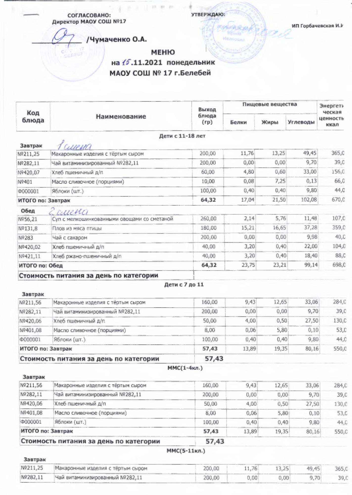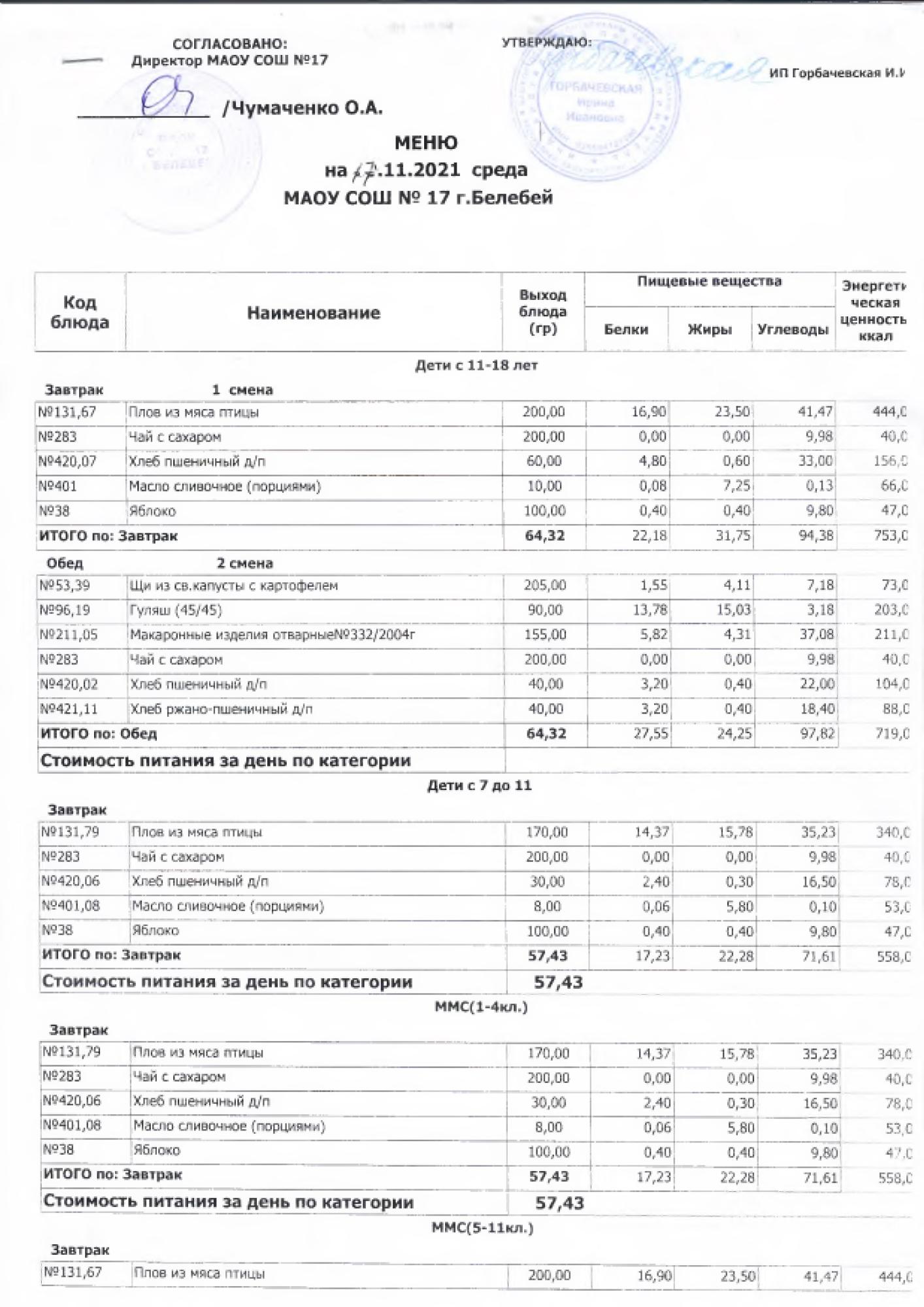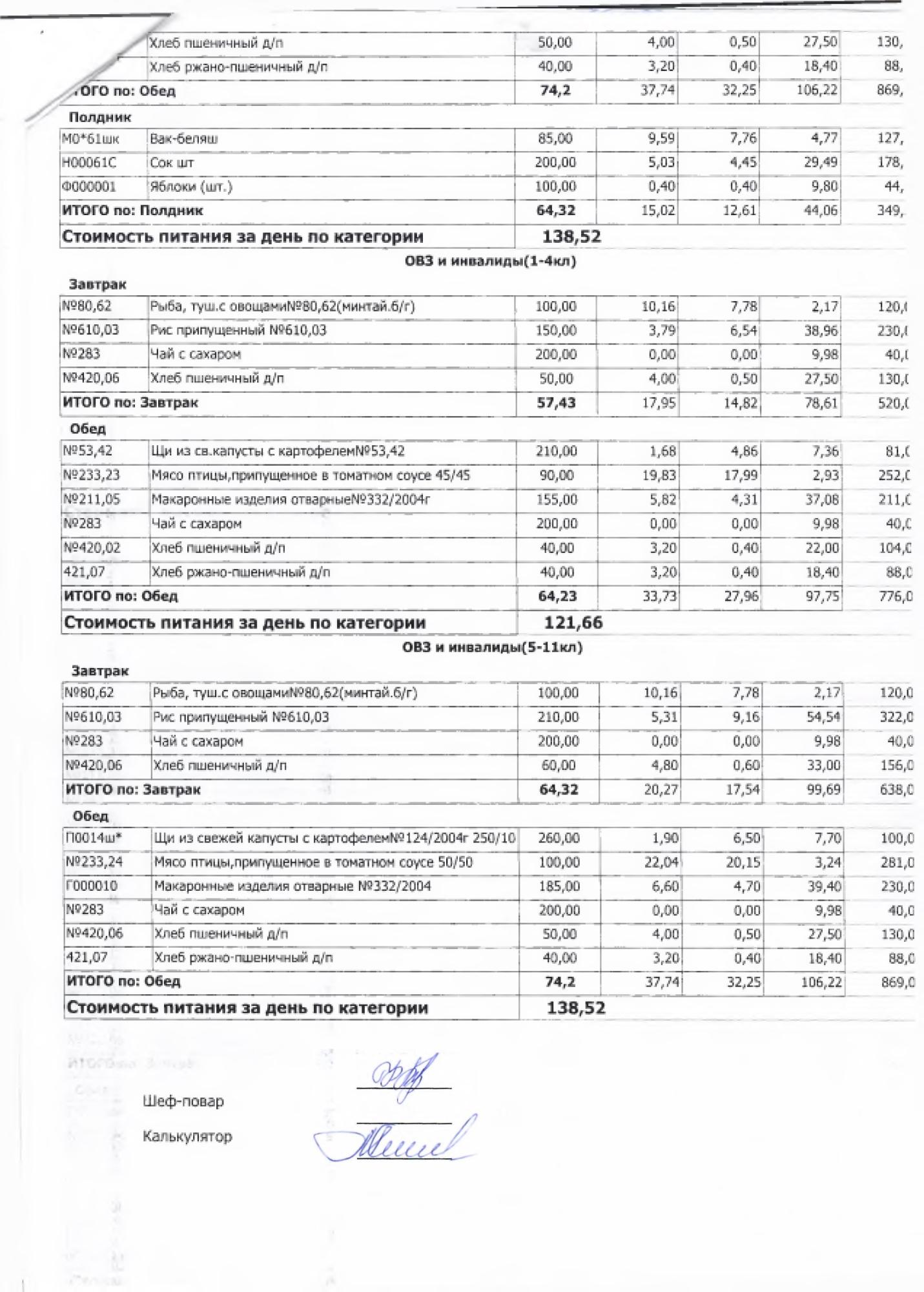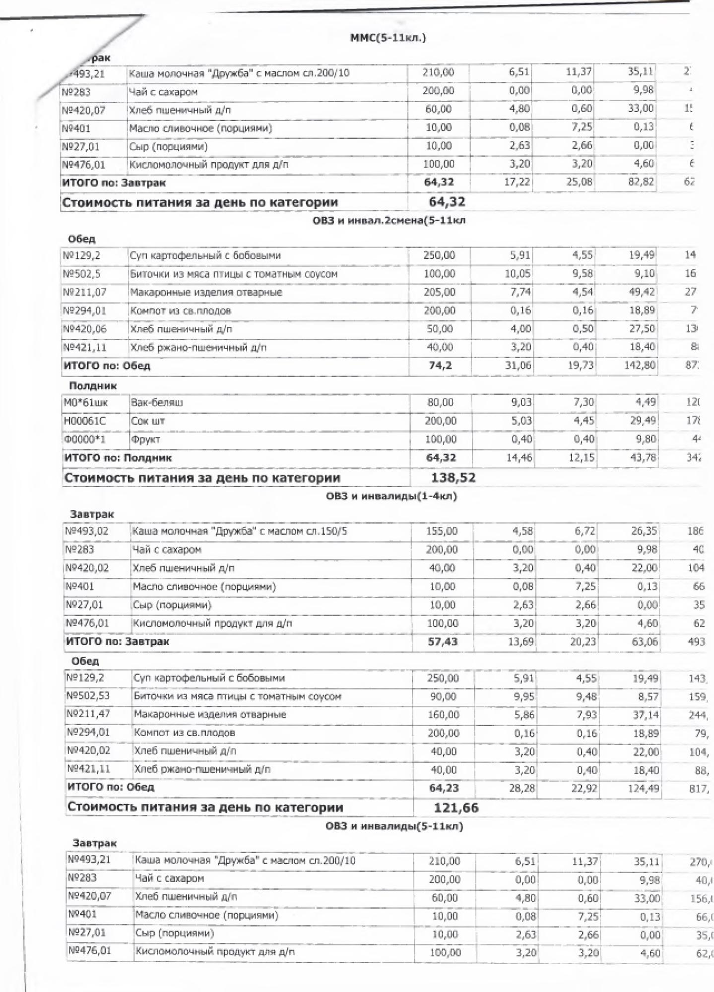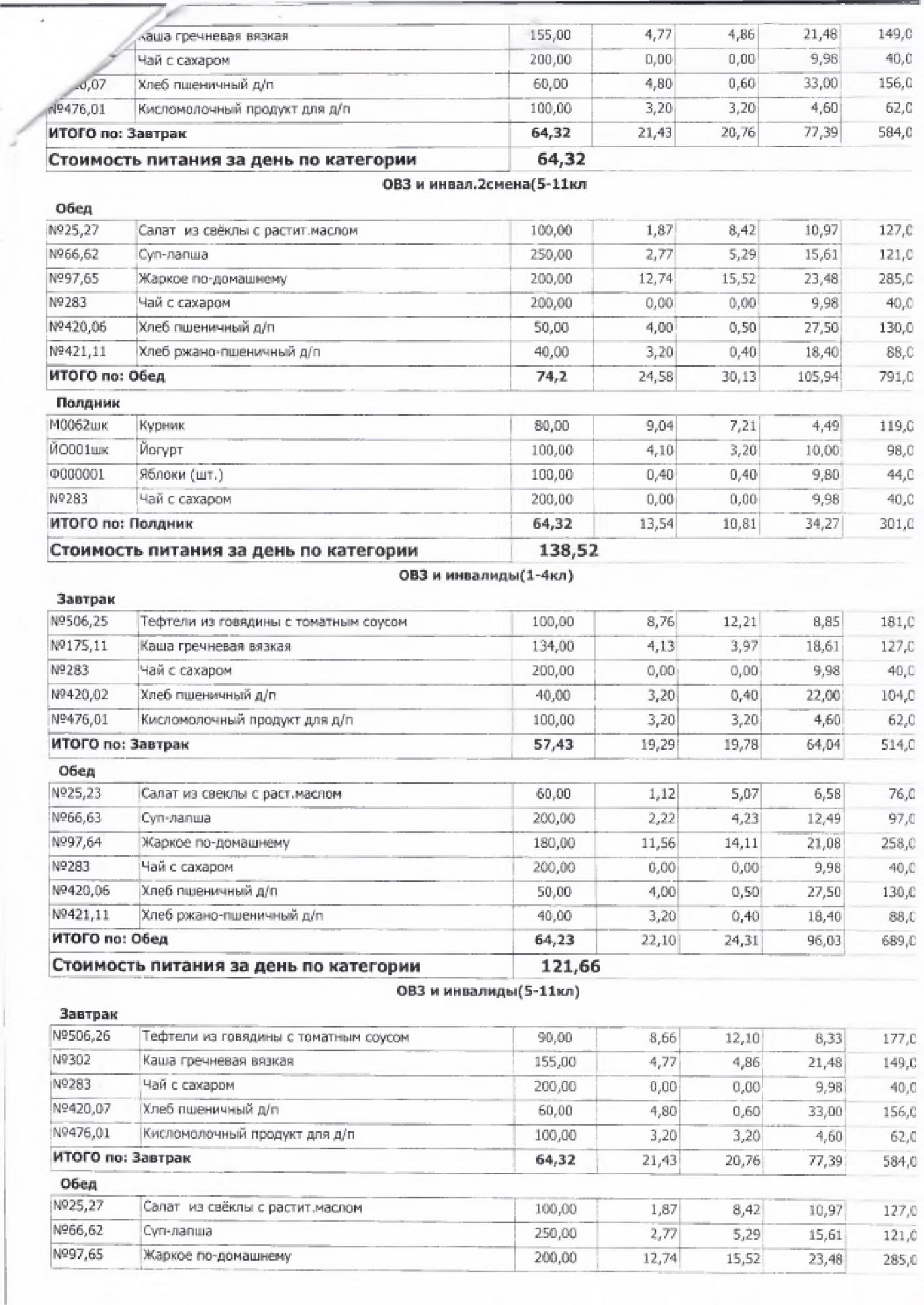 В данном разделе ежедневно размещается фотографии меню и контрольных блюд.