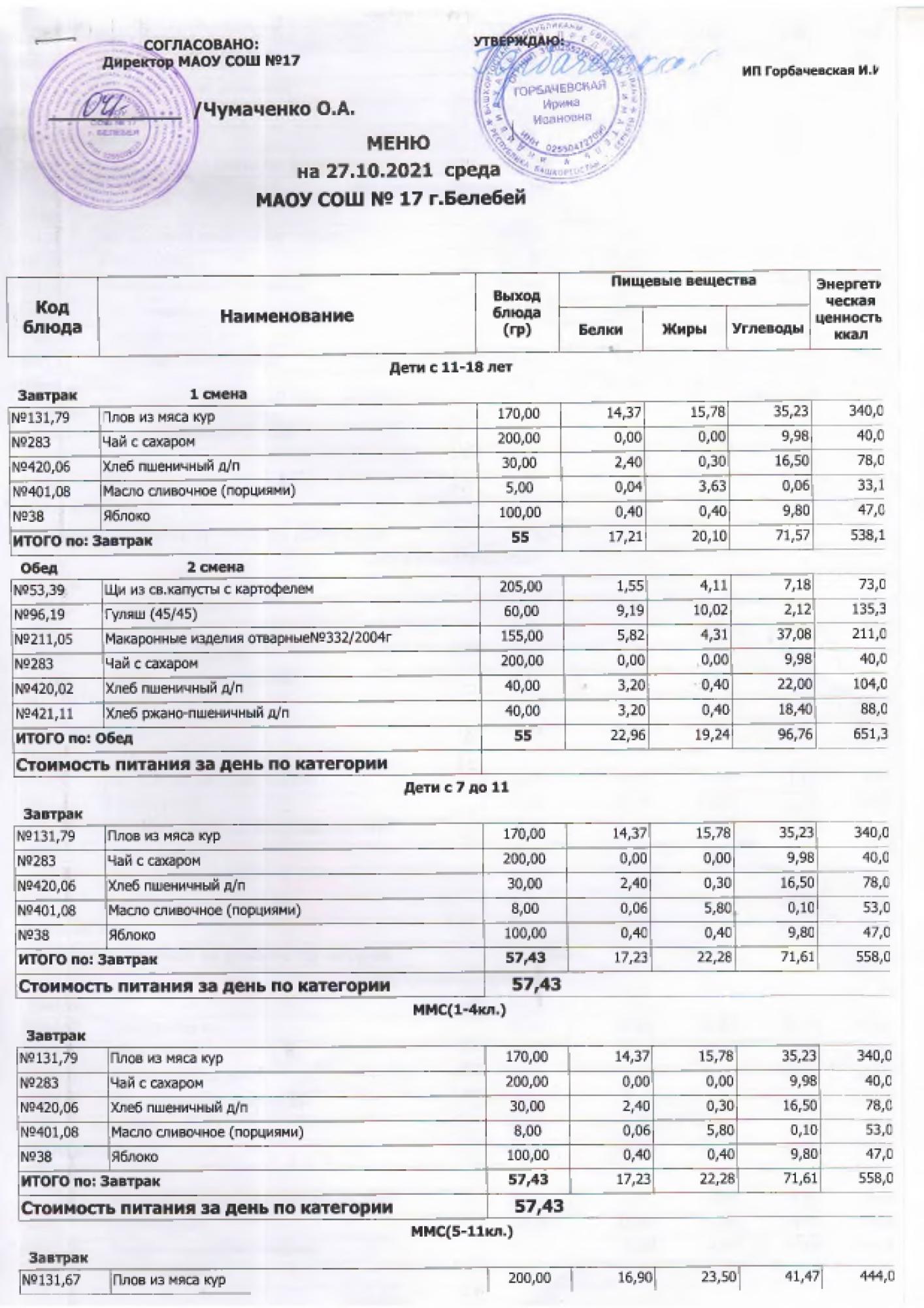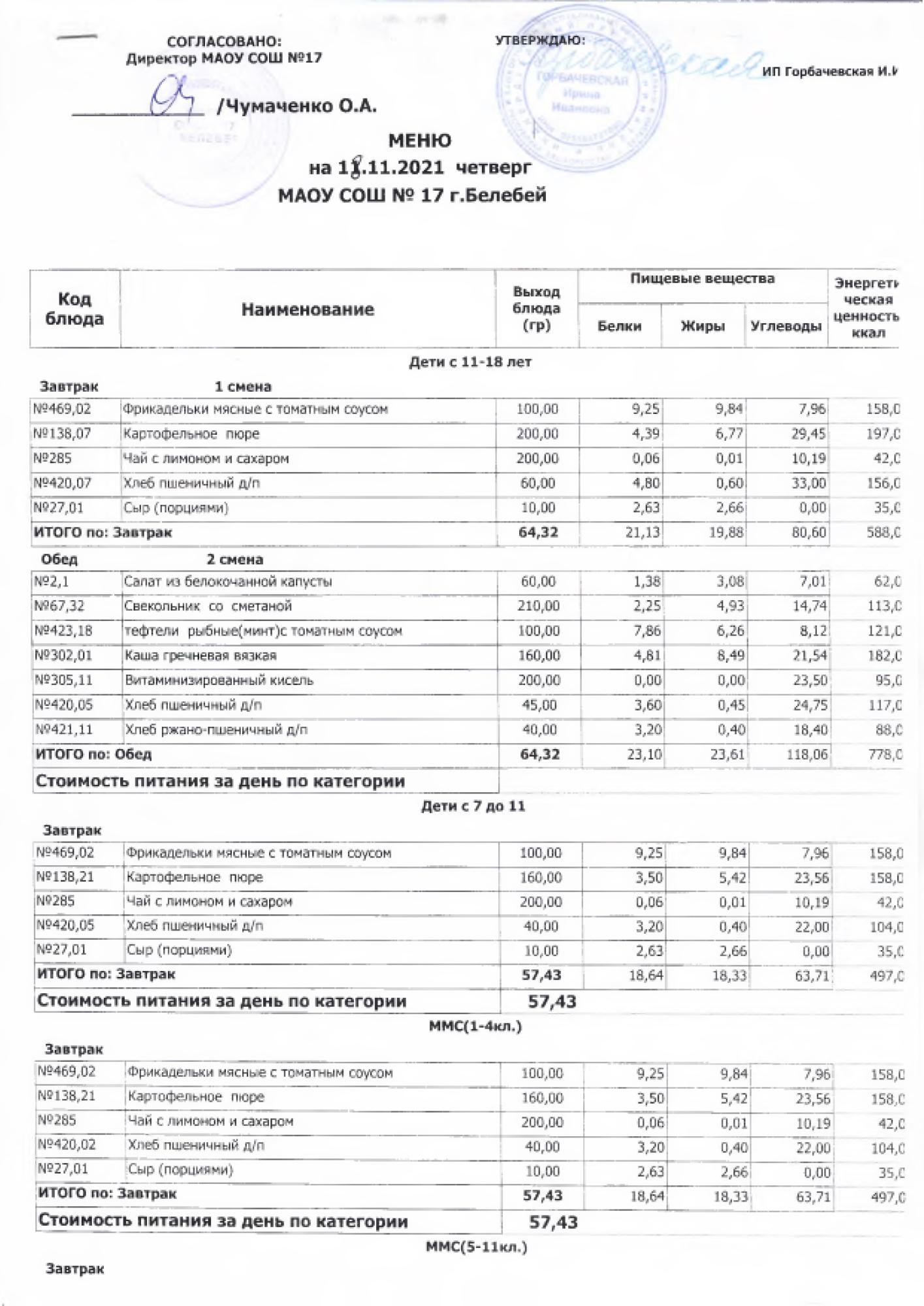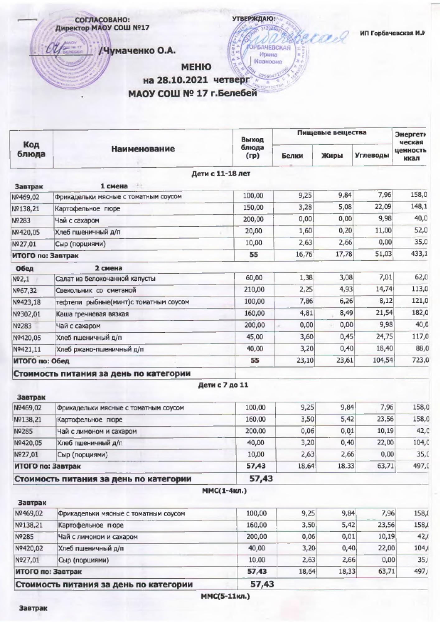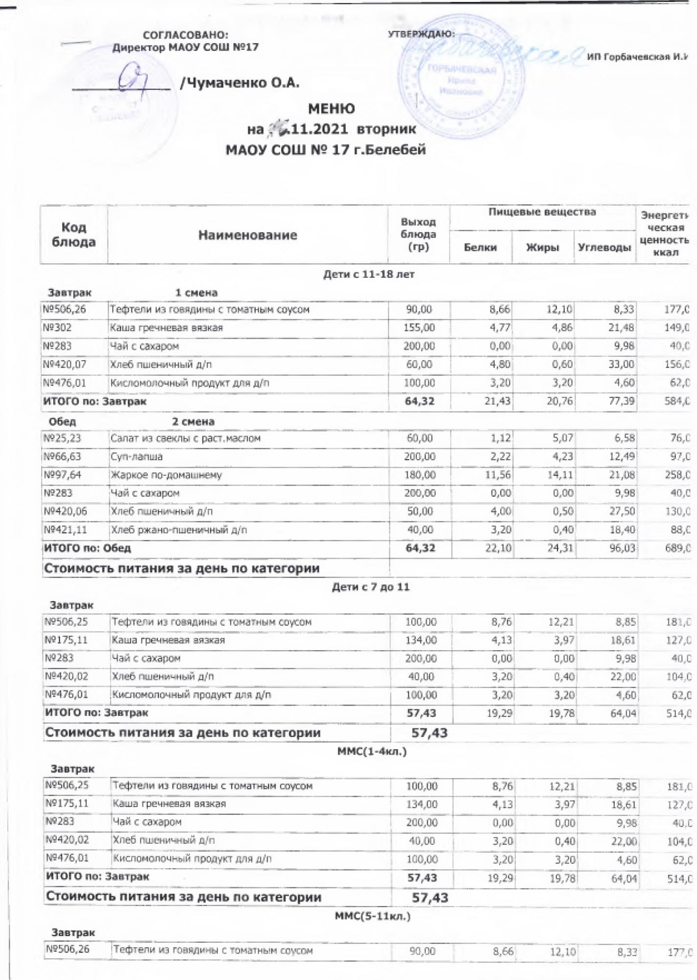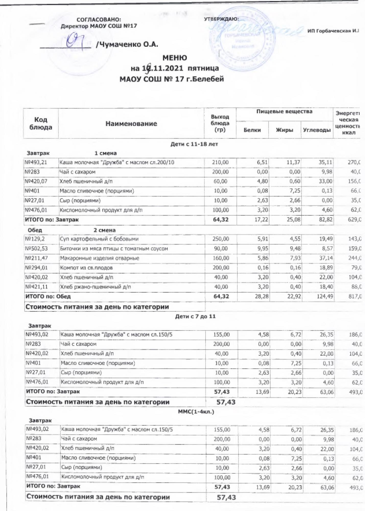 В данном разделе ежедневно размещается фотографии меню и контрольных блюд.